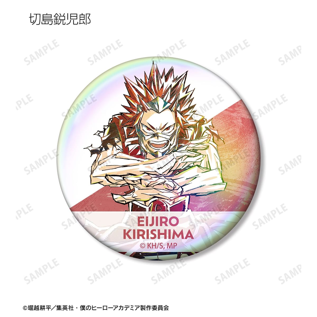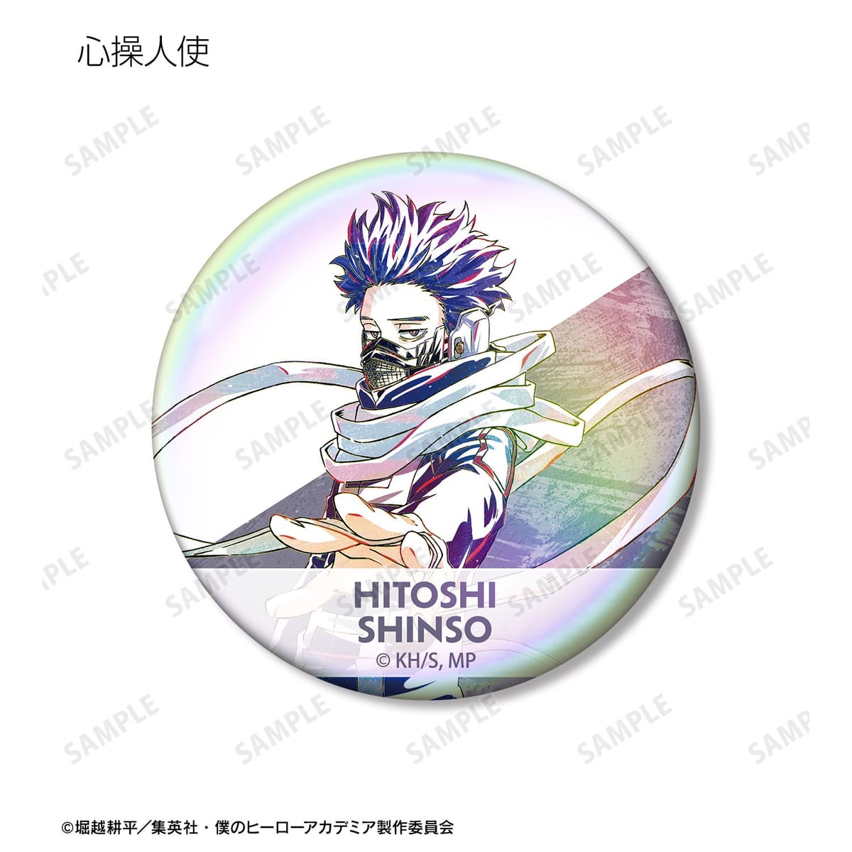轟焦凍、切島鋭児郎、八百万百、芦戸三奈、瀬呂範太、鉄哲徹鐵、心操人使、エンデヴァー、トガヒミコ、トゥワイスのビジュアルを新たなタッチで魅力的に表現し、オーロラ加工を施した缶バッジに仕上げました。