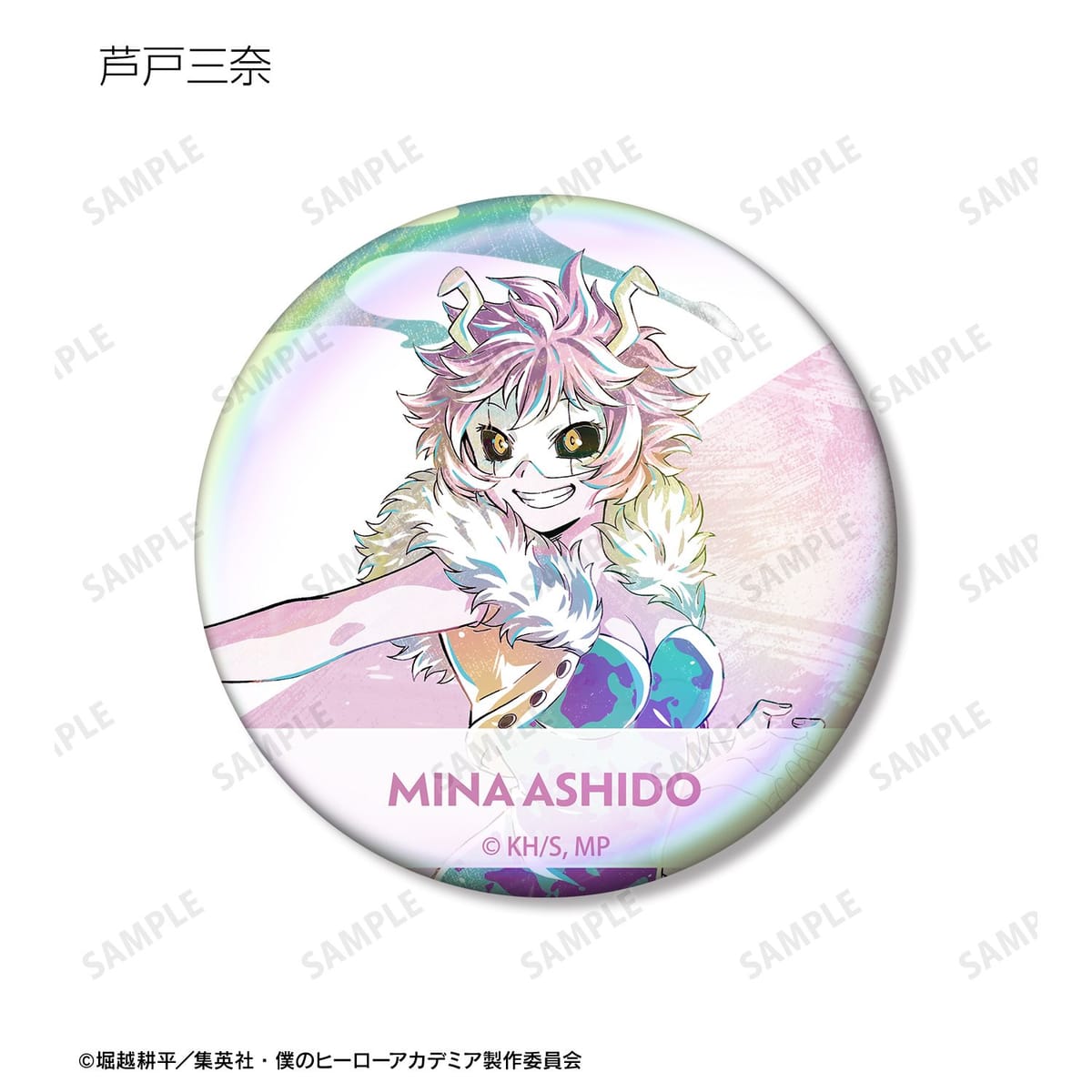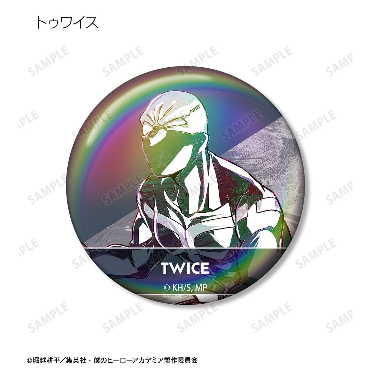 轟焦凍、切島鋭児郎、八百万百、芦戸三奈、瀬呂範太、鉄哲徹鐵、心操人使、エンデヴァー、トガヒミコ、トゥワイスのビジュアルを新たなタッチで魅力的に表現し、オーロラ加工を施した缶バッジに仕上げました。