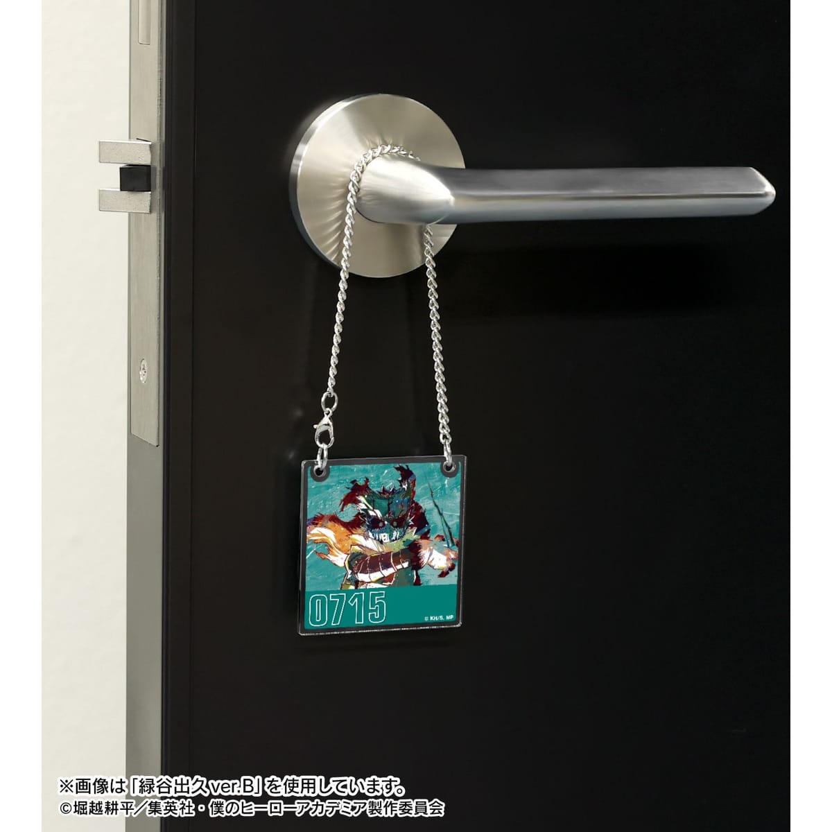 緑谷出久、爆豪勝己、飯田天哉、上鳴電気、耳郎響香、ミルコ、荼毘、レディ・ナガンのビジュアルを新たなタッチで魅力的に表現し、アクリルのドアプレート風チャームに仕上げました。20cmのチェーンが付属しております。