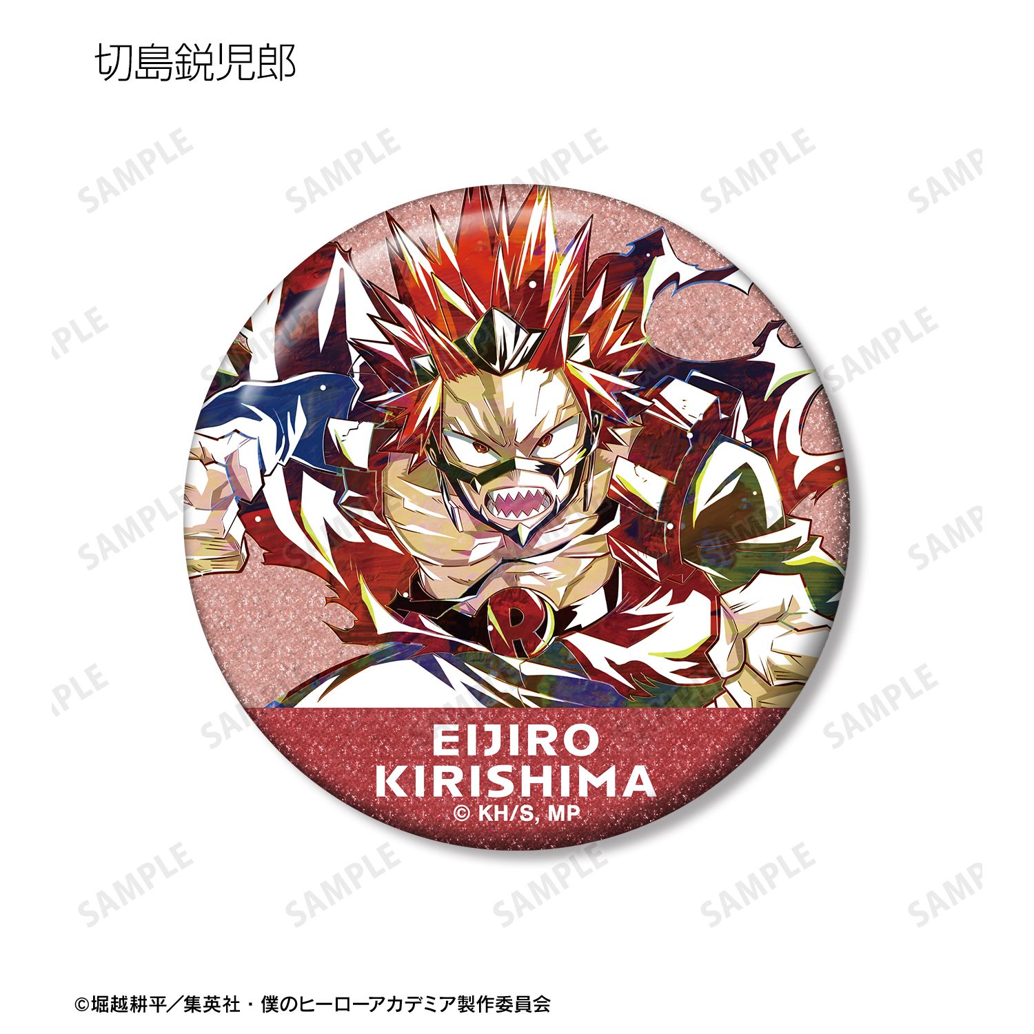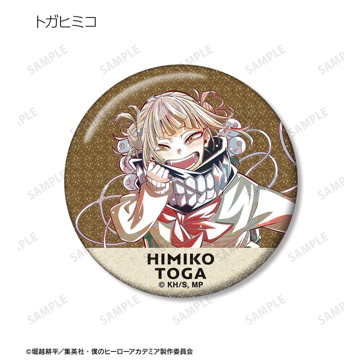 緑谷出久、麗日お茶子、轟焦凍、切島鋭児郎、オールマイト、エンデヴァー、ホークス、死柄木弔、トガヒミコのビジュアルを新たなタッチで魅力的に表現し、グリッター加工を施した缶バッジに仕上げました。