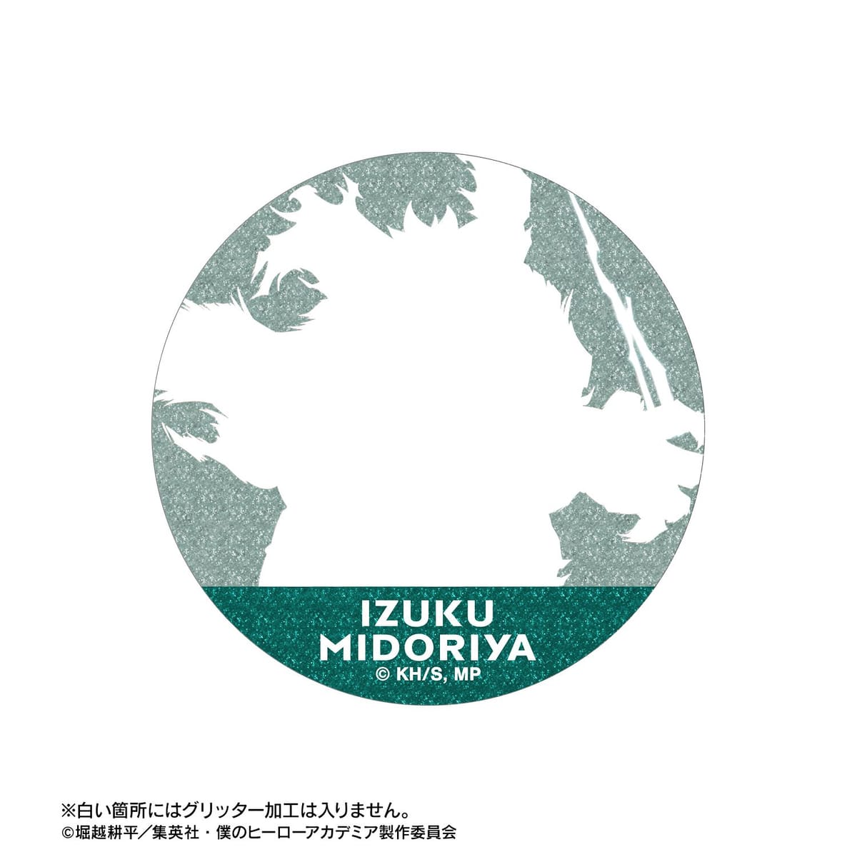 緑谷出久、爆豪勝己、飯田天哉、上鳴電気、耳郎響香、ミルコ、荼毘、レディ・ナガンのビジュアルを新たなタッチで魅力的に表現し、グリッター加工を施した缶バッジに仕上げました。