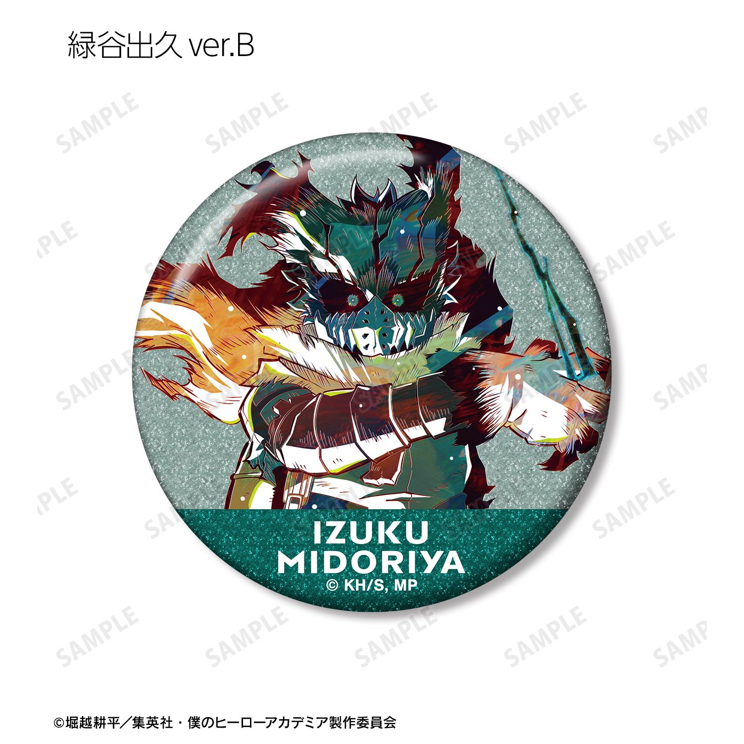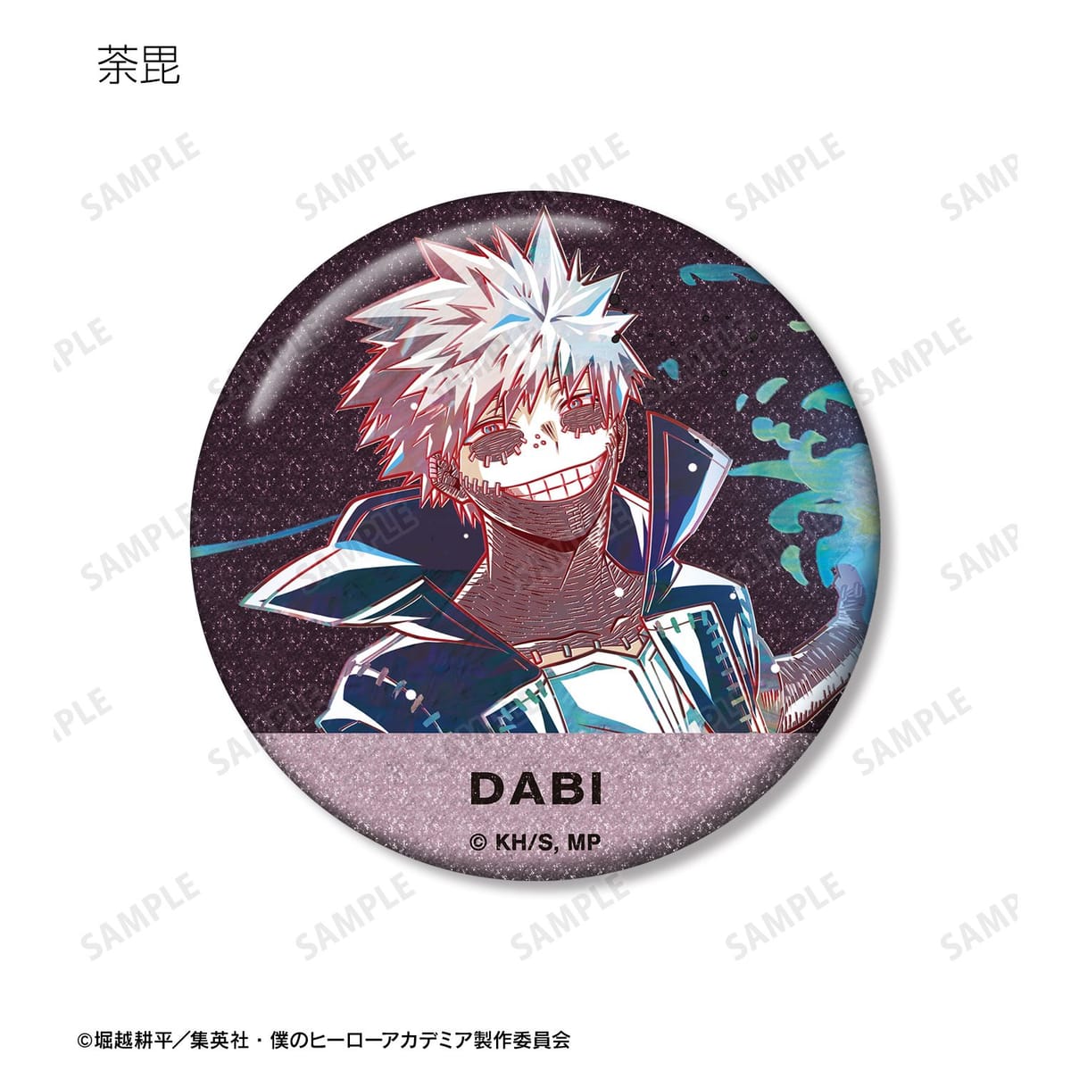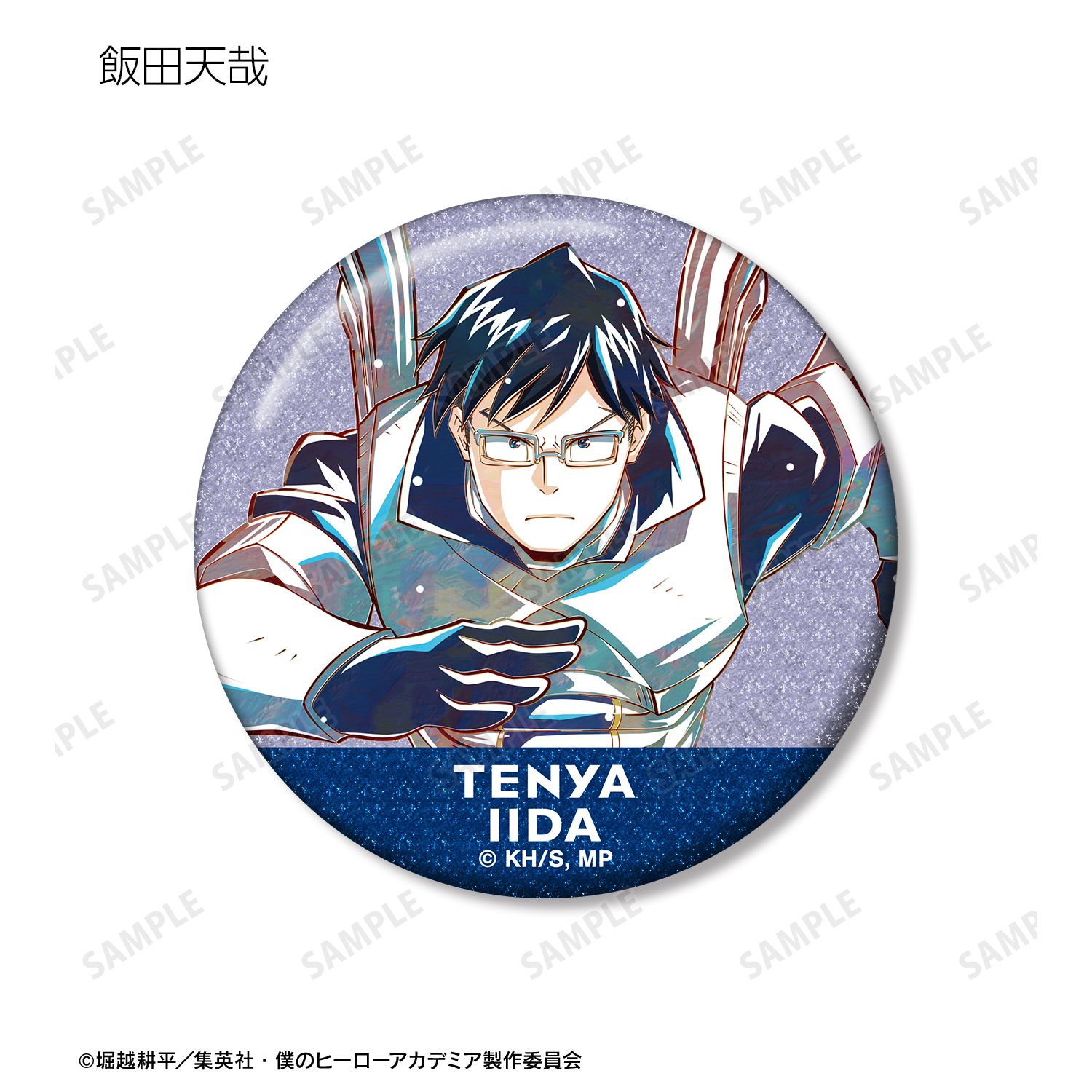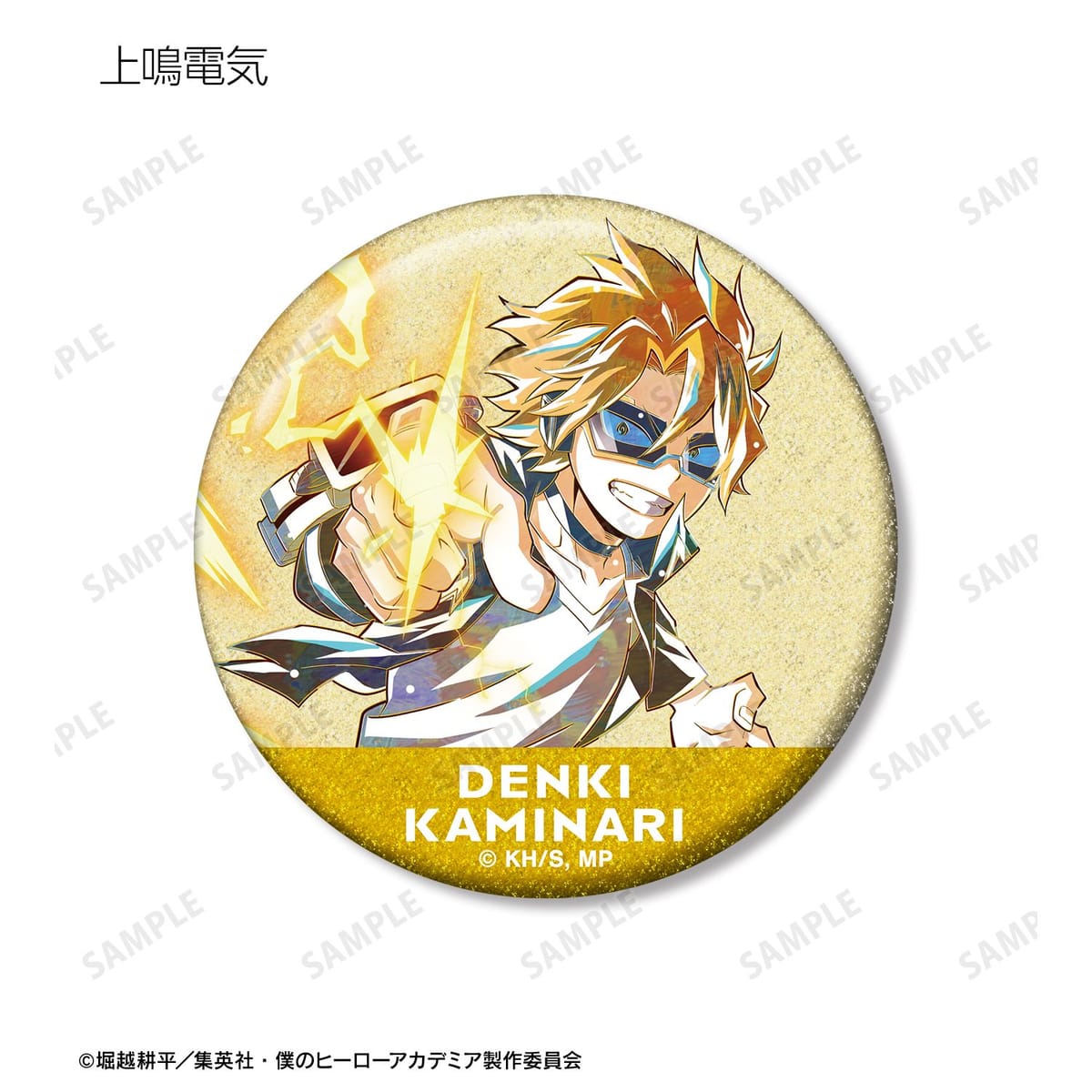 緑谷出久、爆豪勝己、飯田天哉、上鳴電気、耳郎響香、ミルコ、荼毘、レディ・ナガンのビジュアルを新たなタッチで魅力的に表現し、グリッター加工を施した缶バッジに仕上げました。