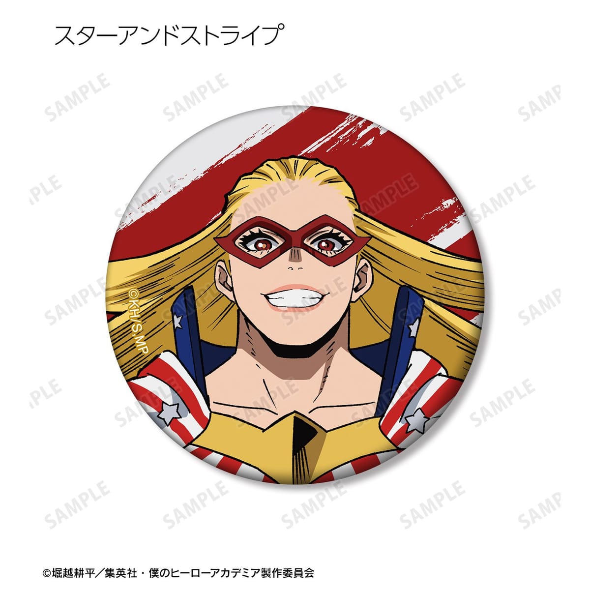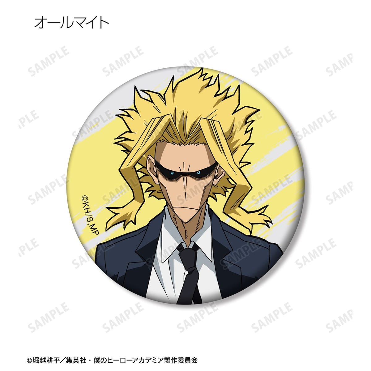 オールマイト、エンデヴァー、ベストジーニスト、エッジショット、スターアンドストライプ、ワン・フォー・オール 3代目継承者、四ノ森避影、志村菜奈、死柄木弔、トガヒミコのビジュアルをマットな手触りの缶バッジに仕上げました。
