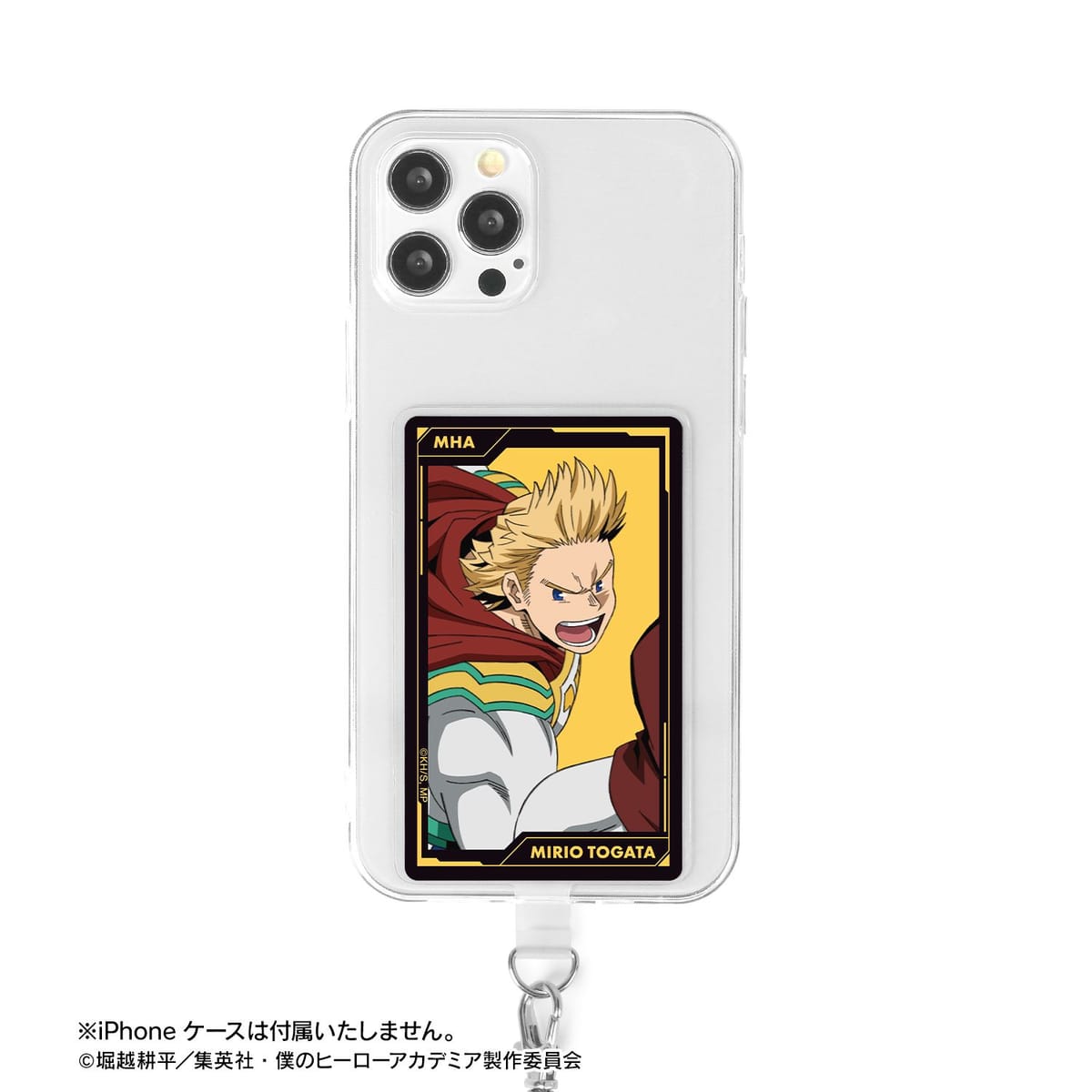 挟み込むだけでスマホショルダーケースとして使用が可能となります。※13mm以下の充電口には金具が通らない恐れがあります。