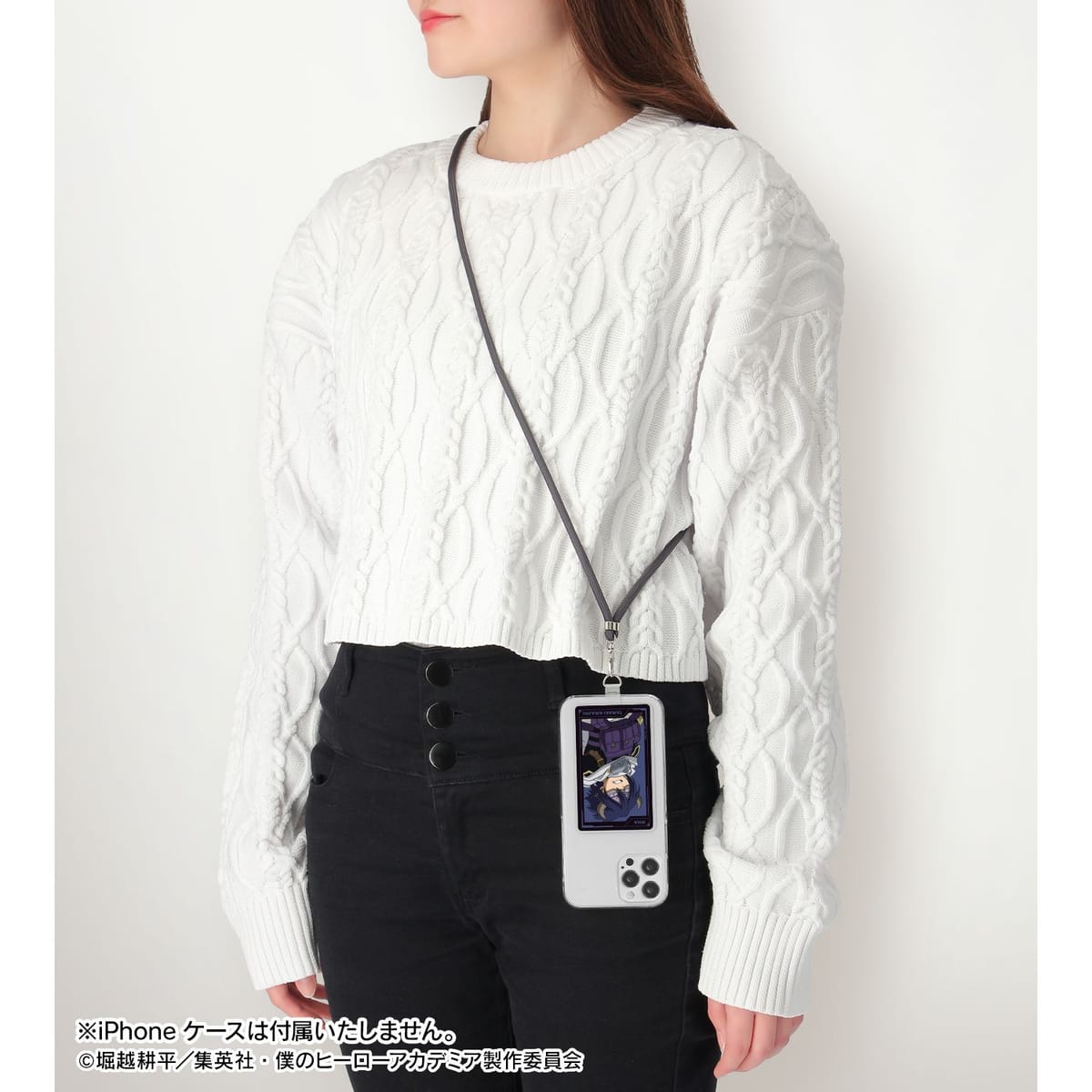 挟み込むだけでスマホショルダーケースとして使用が可能となります。※13mm以下の充電口には金具が通らない恐れがあります。