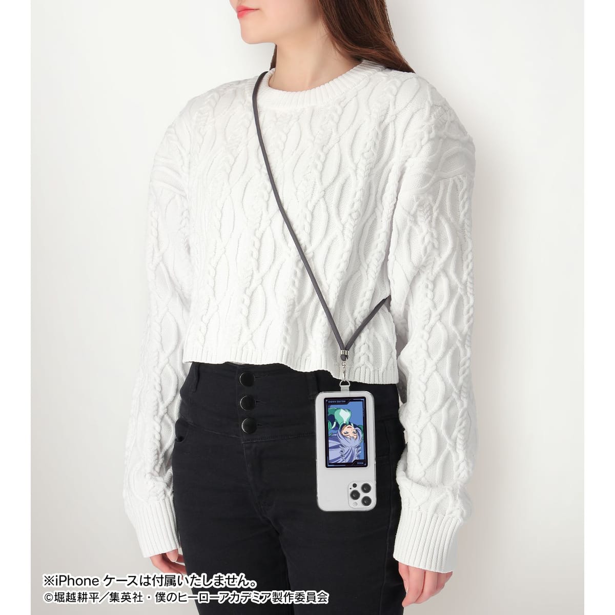 挟み込むだけでスマホショルダーケースとして使用が可能となります。※13mm以下の充電口には金具が通らない恐れがあります。