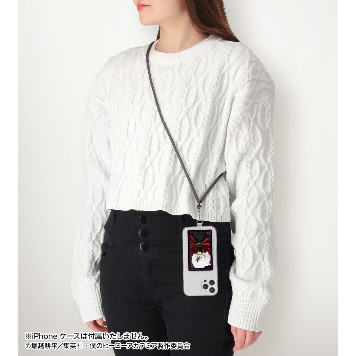 挟み込むだけでスマホショルダーケースとして使用が可能となります。※13mm以下の充電口には金具が通らない恐れがあります。