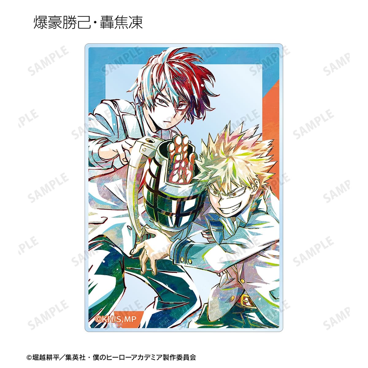 緑谷出久、爆豪勝己、轟焦凍のビジュアルを新たなタッチで魅力的に表現し、アクリルカードに仕上げました。