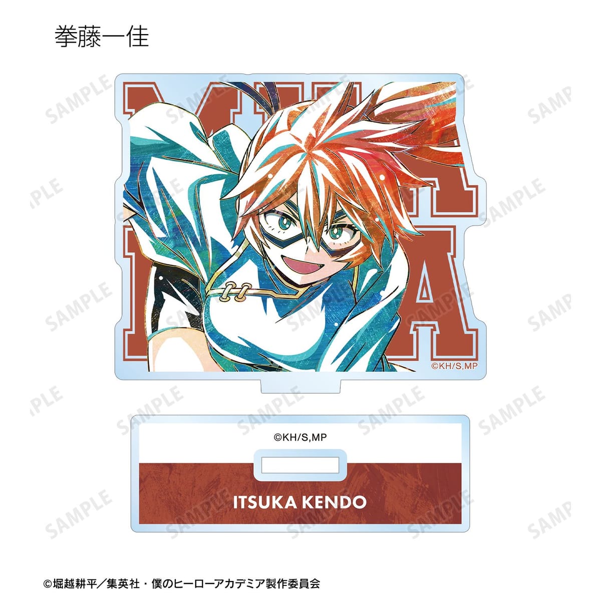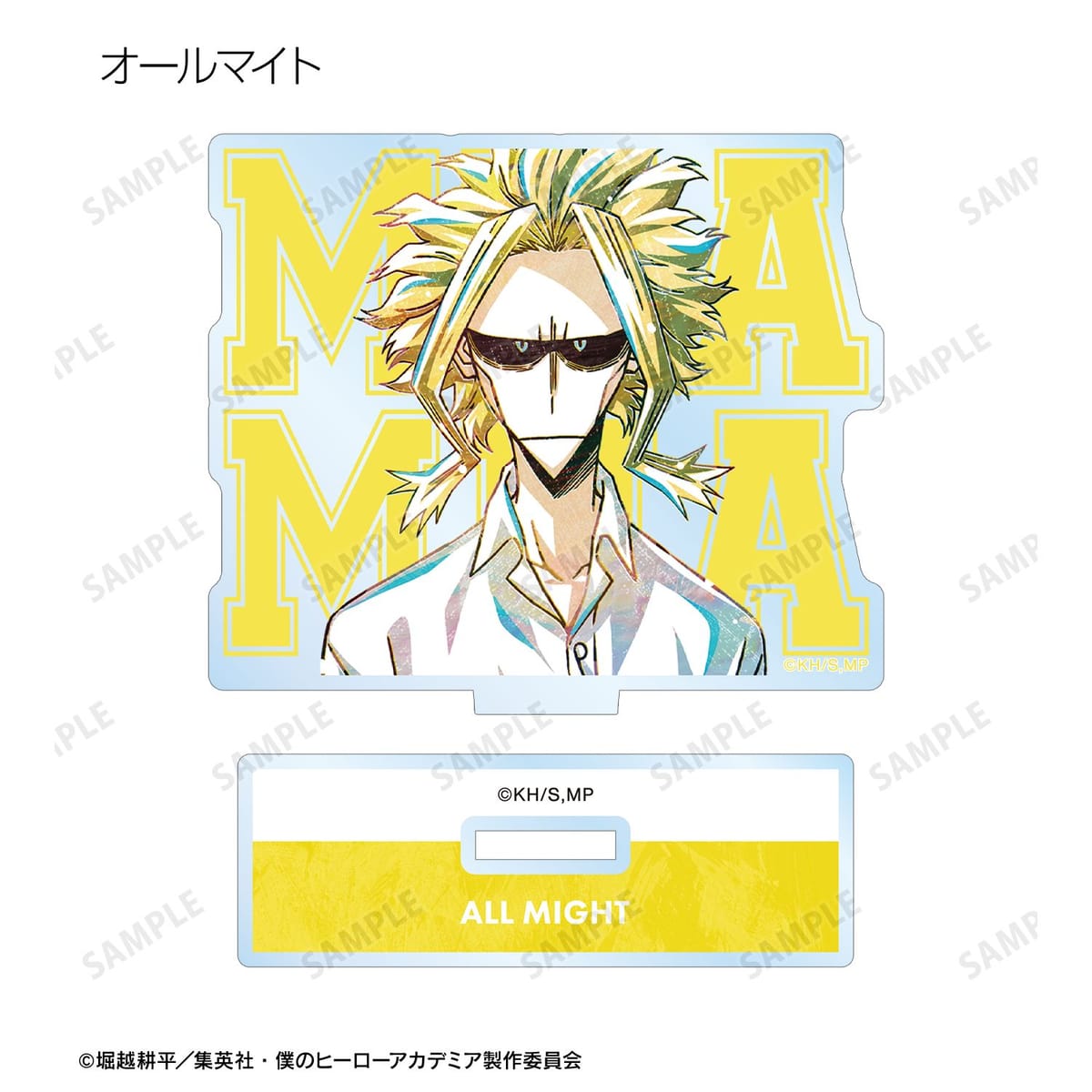 緑谷出久、蛙吹梅雨、物間寧人、拳藤一佳、通形ミリオ、オールマイト、リューキュウ、死柄木弔、リ・デストロのビジュアルを新たなタッチで魅力的に表現し、アクリルスタンドに仕上げました。