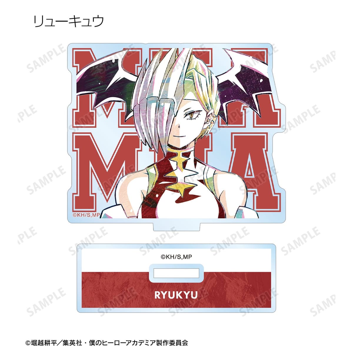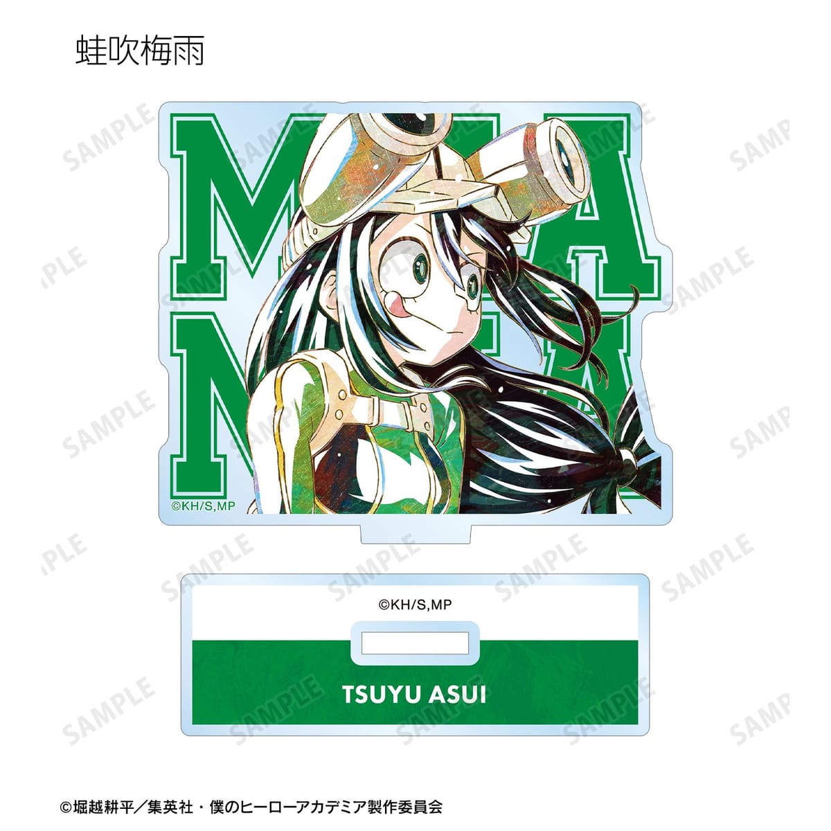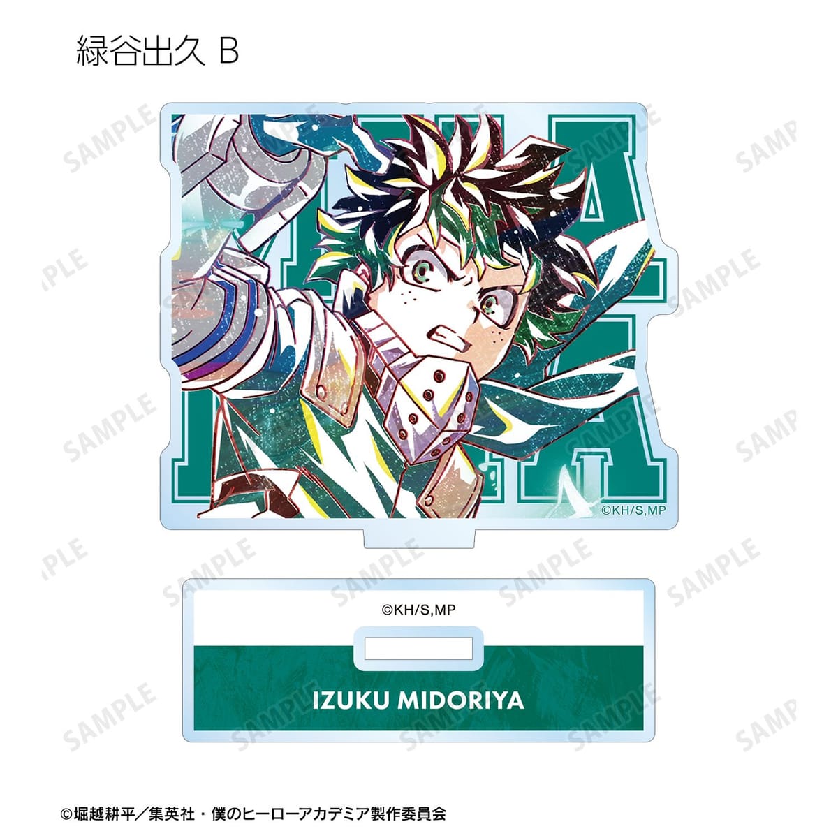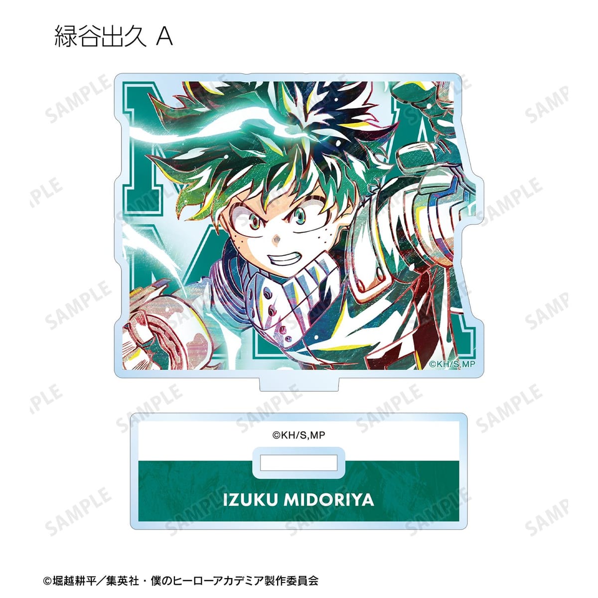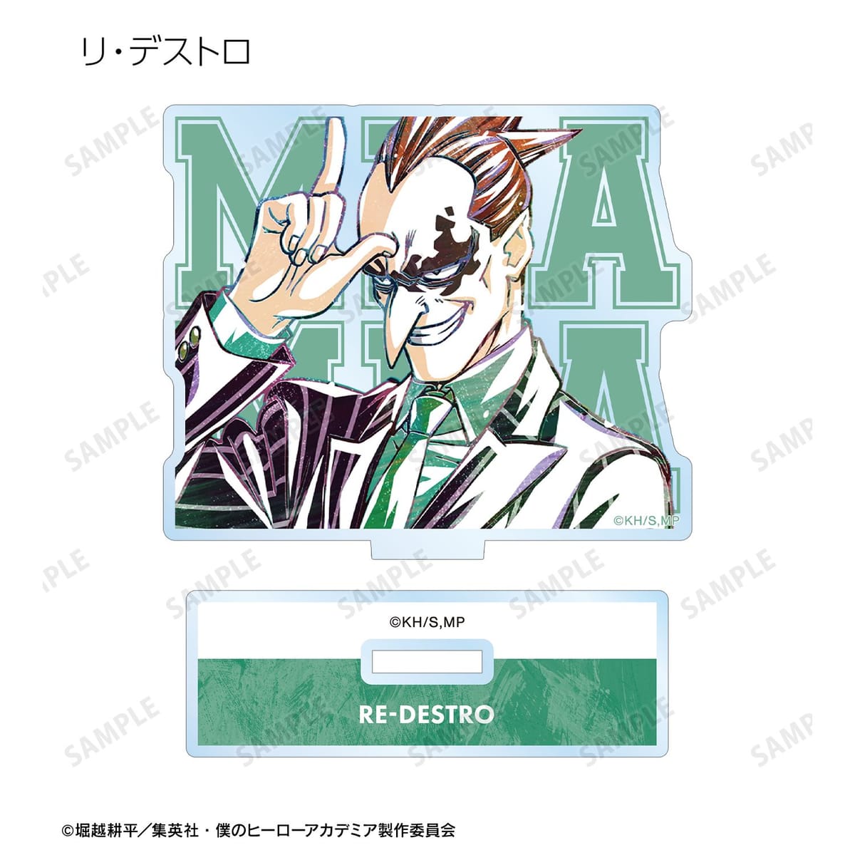 緑谷出久、蛙吹梅雨、物間寧人、拳藤一佳、通形ミリオ、オールマイト、リューキュウ、死柄木弔、リ・デストロのビジュアルを新たなタッチで魅力的に表現し、アクリルスタンドに仕上げました。