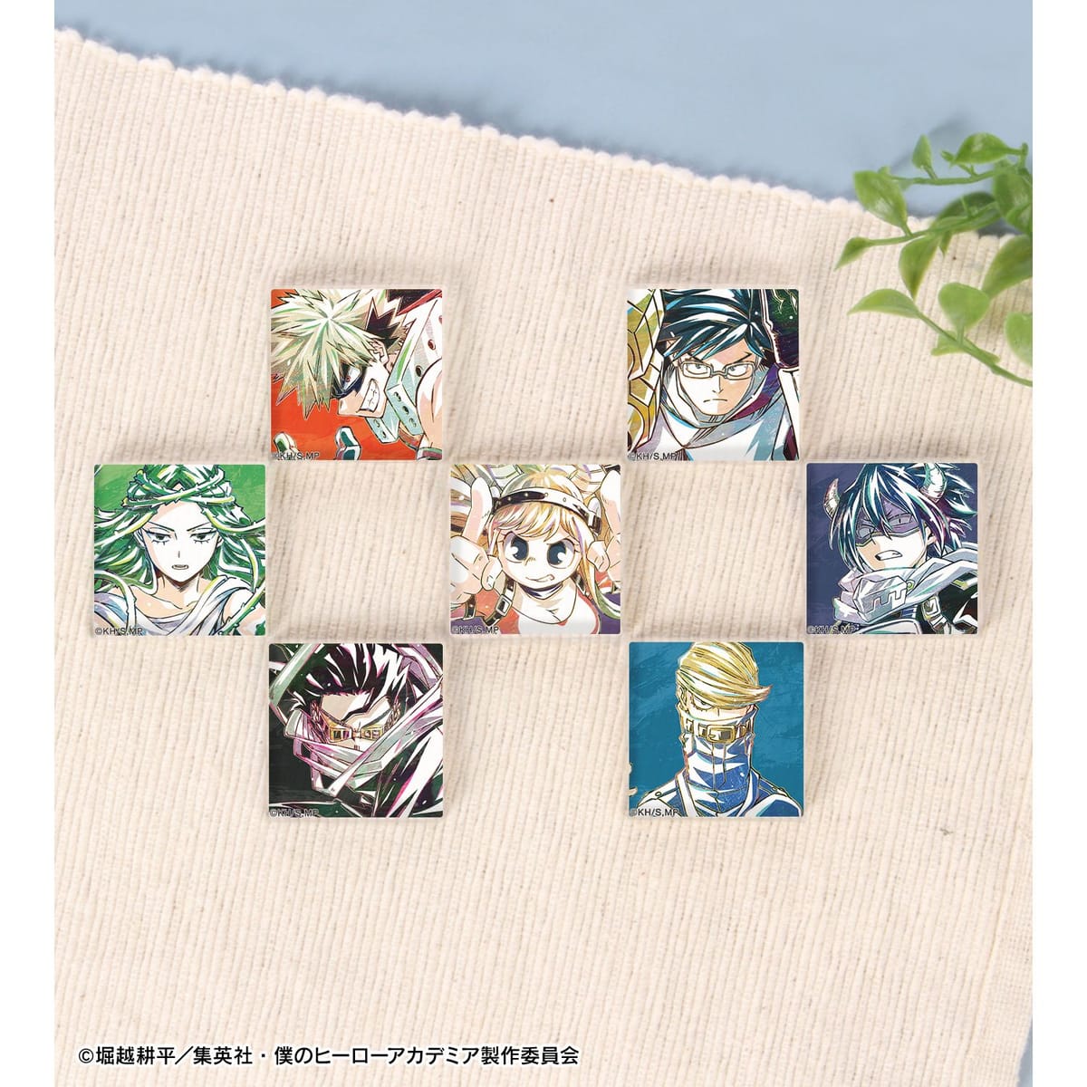 爆豪勝己、飯田天哉、塩崎茨、角取ポニー、天喰環、イレイザーヘッド、ベストジーニスト、ファットガム、トゥワイス、Mr.コンプレス、トランペット、キュリオスのビジュアルを新たなタッチで魅力的に表現し、アクリルタイルに仕上げました。