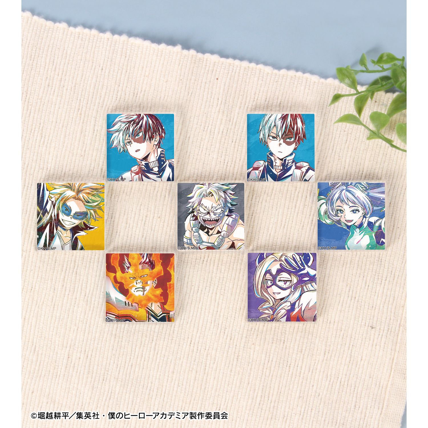 轟焦凍、上鳴電気、鉄哲徹鐵、波動ねじれ、エンデヴァー、Mt.レディ、オール・フォー・ワン、荼毘、スピナー、ギガントマキア、スケプティックのビジュアルを新たなタッチで魅力的に表現し、アクリルタイルに仕上げました。