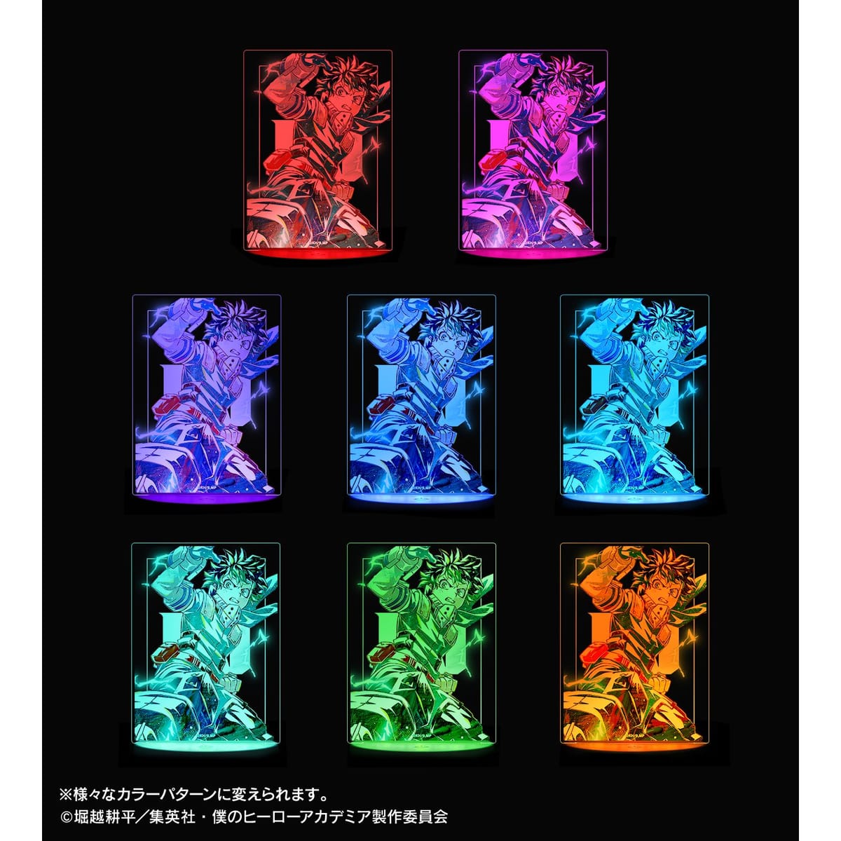 緑谷出久のビジュアルを新たなタッチで魅力的に表現し、ライトアップするアクリルスタンドに仕上げました。