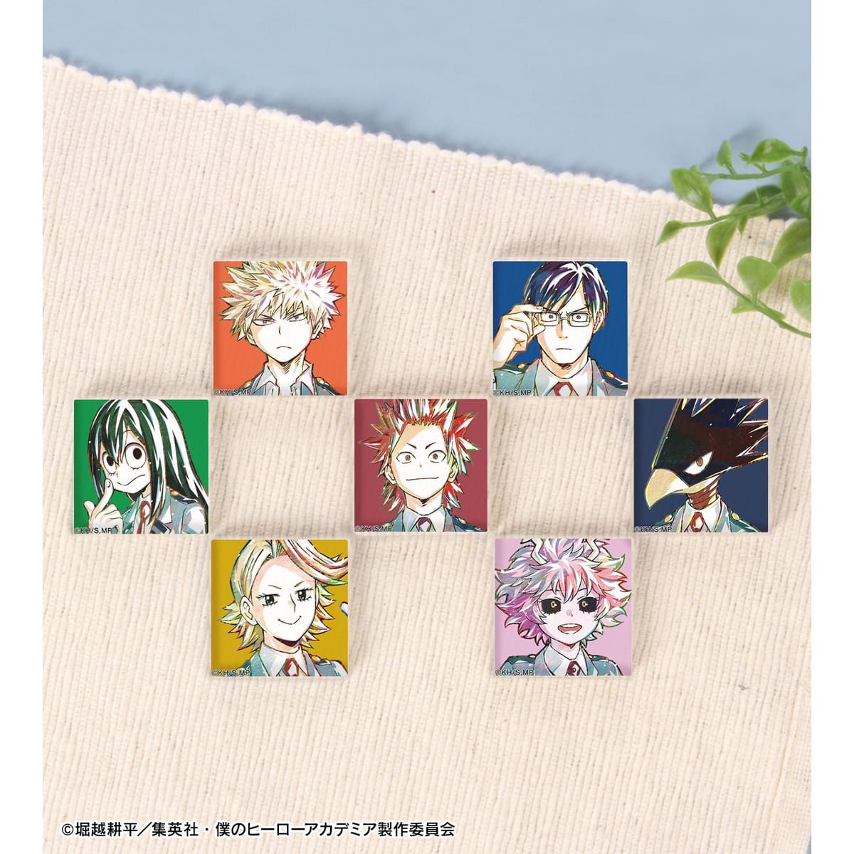 爆豪勝己、飯田天哉、蛙吹梅雨、切島鋭児郎、常闇踏陰、青山優雅、芦戸三奈、尾白猿夫、葉隠透、口田甲司、イレイザーヘッドのビジュアルを新たなタッチで魅力的に表現し、アクリルタイルに仕上げました。