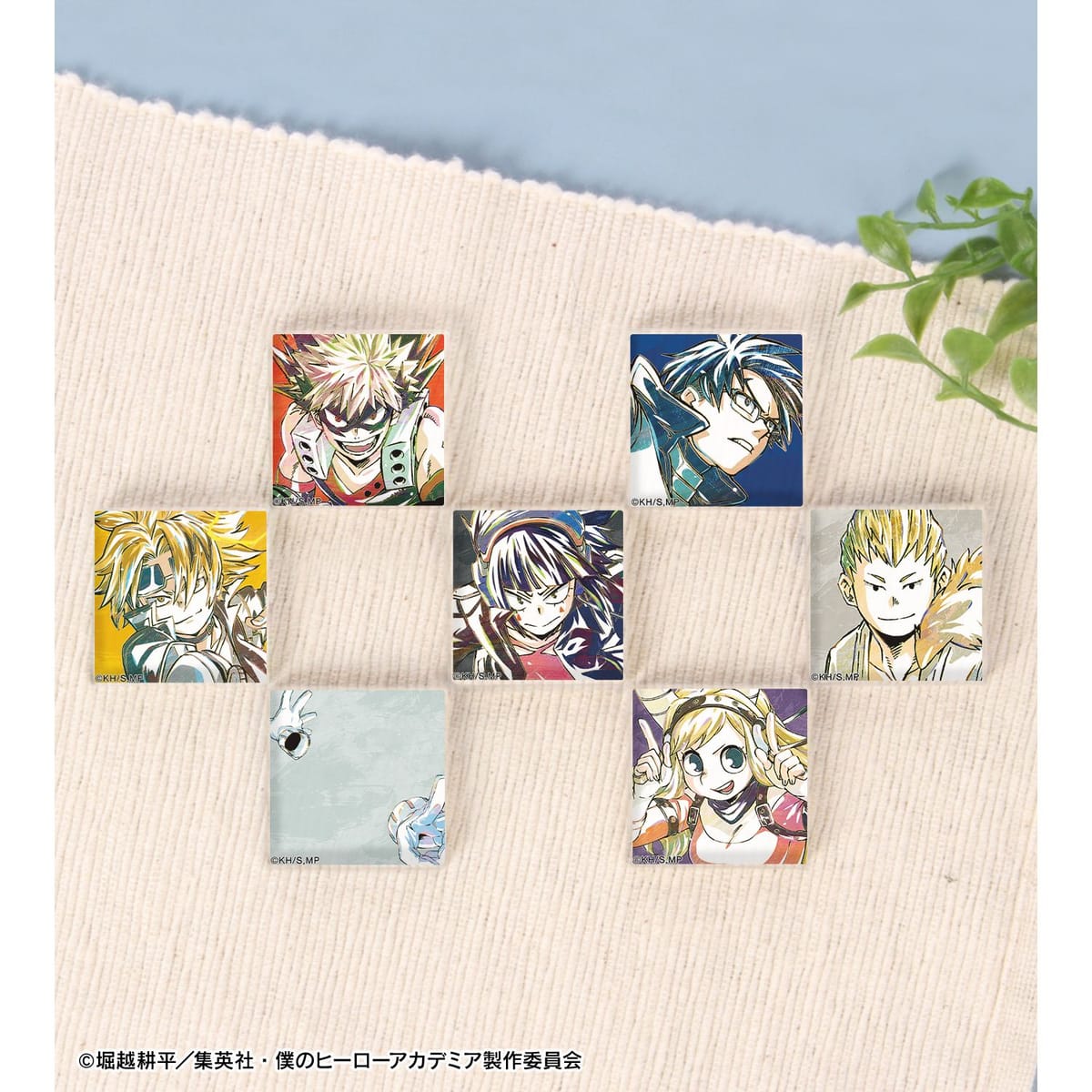 爆豪勝己、飯田天哉、上鳴電気、耳郎響香、尾白猿夫、葉隠透、角取ポニー、イレイザーヘッド、プレゼント・マイク、荼毘のビジュアルを新たなタッチで魅力的に表現し、アクリルタイルに仕上げました。