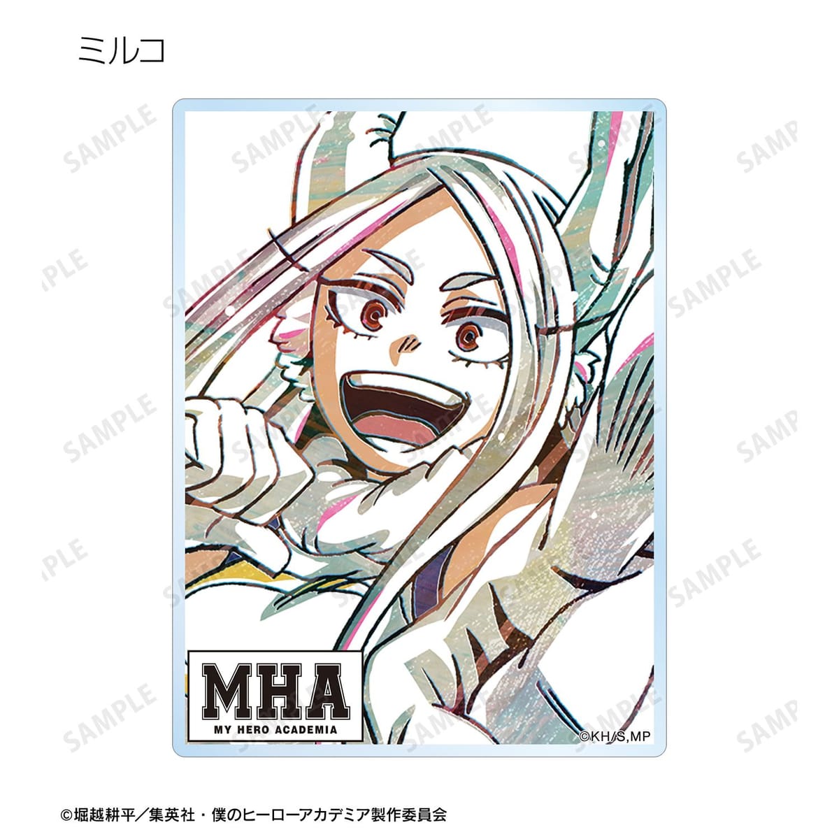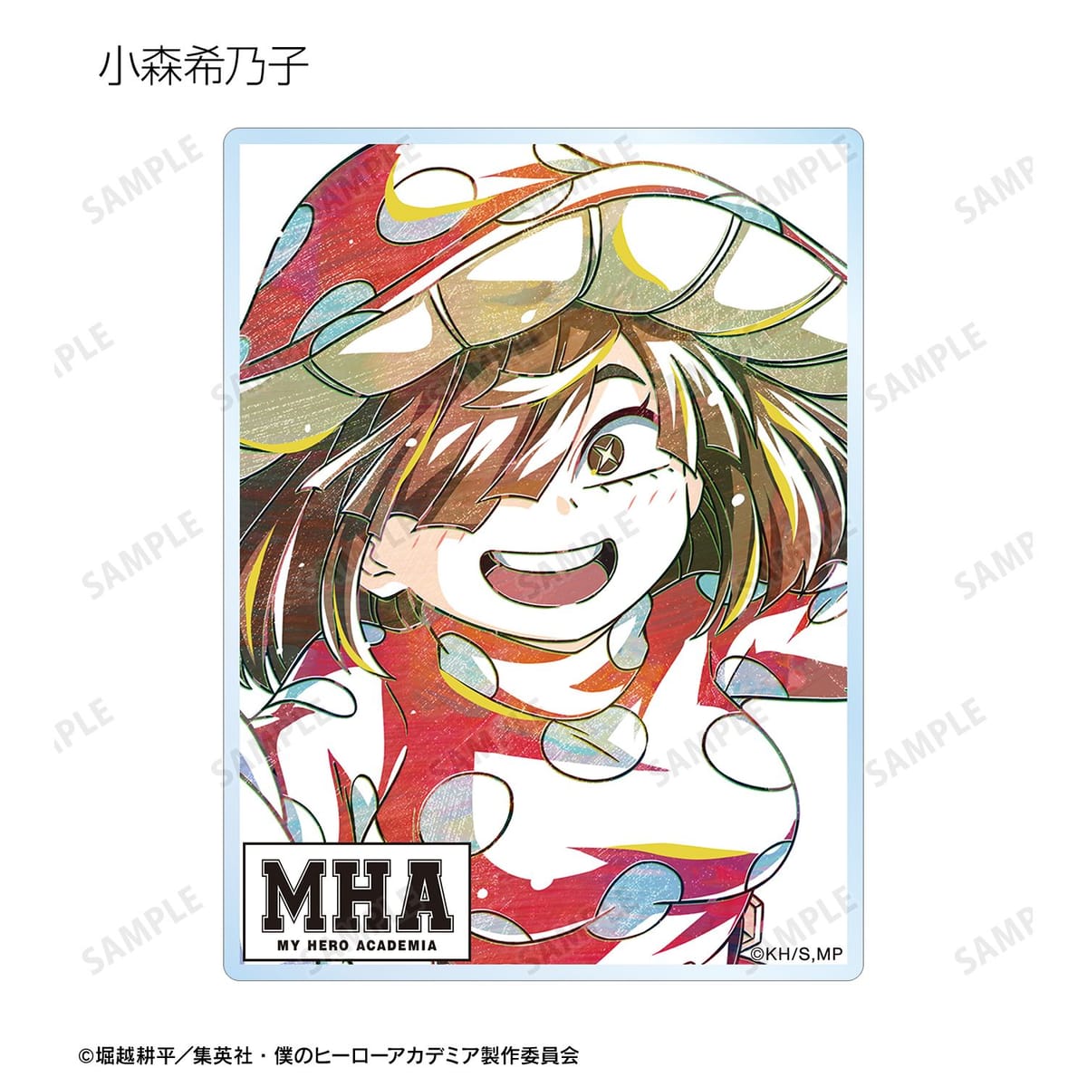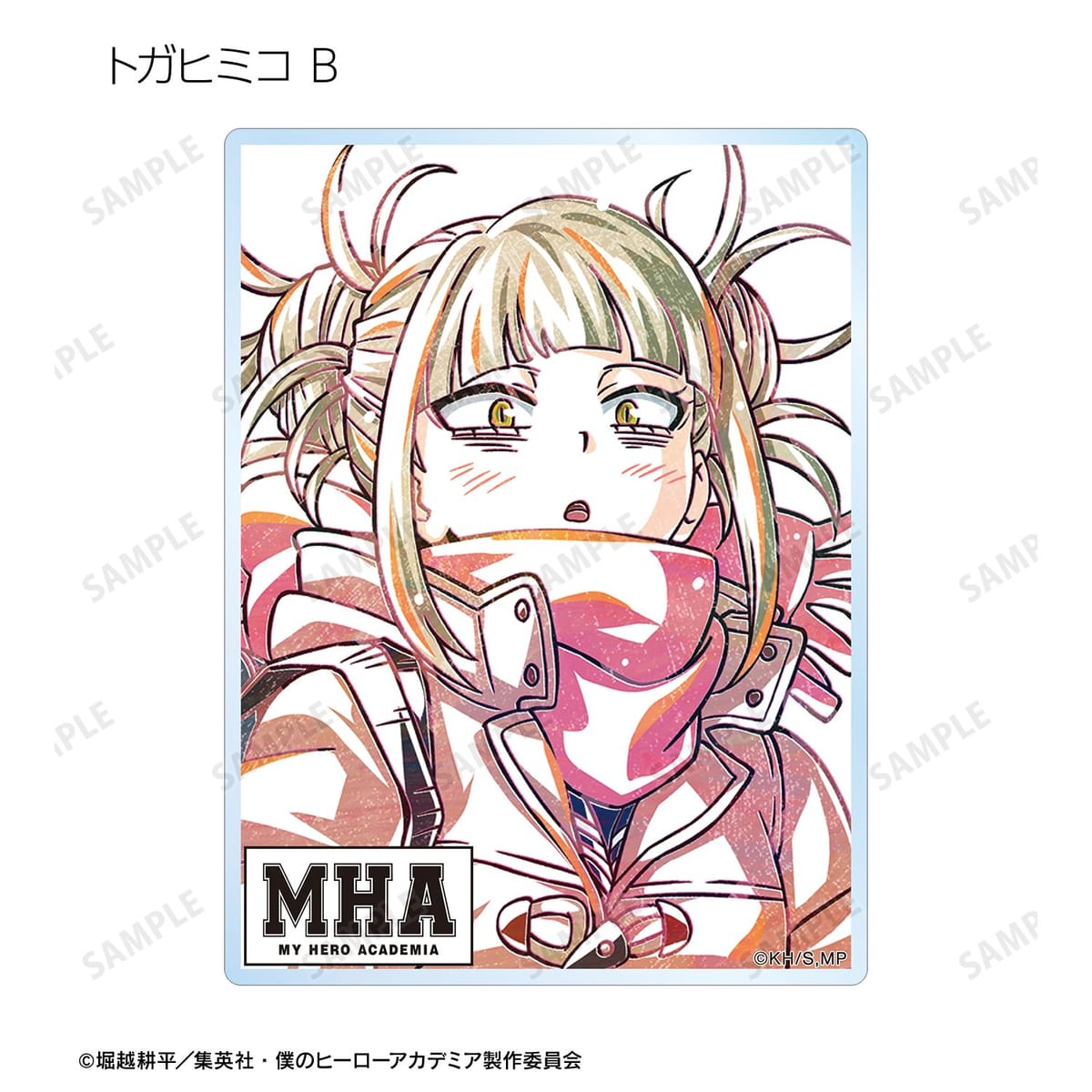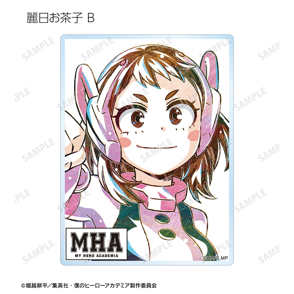 麗日お茶子、切島鋭児郎、小森希乃子、ミッドナイト、ホークス、ミルコ、トガヒミコ、オーバーホール、外典のビジュアルを新たなタッチで魅力的に表現し、アクリルカードに仕上げました。