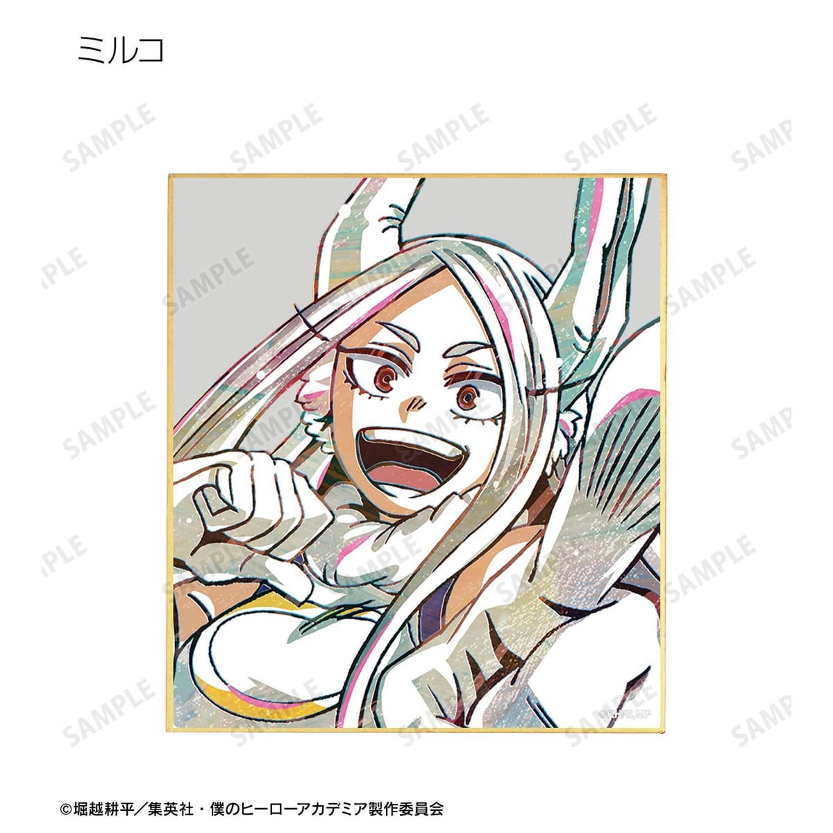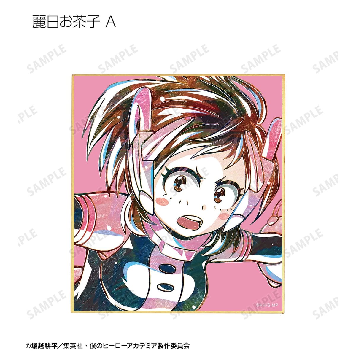 麗日お茶子、切島鋭児郎、小森希乃子、ミッドナイト、ホークス、ミルコ、トガヒミコ、オーバーホール、外典のビジュアルを新たなタッチで魅力的に表現し、ミニ色紙に仕上げました。