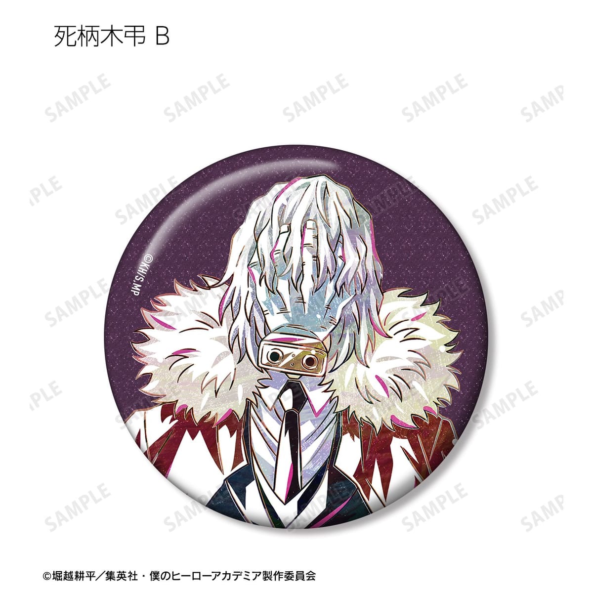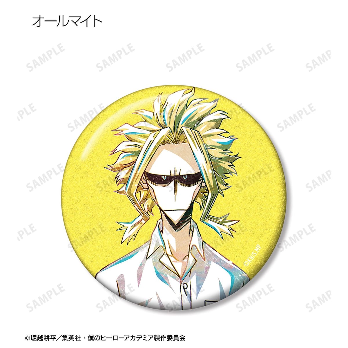 緑谷出久、蛙吹梅雨、物間寧人、拳藤一佳、通形ミリオ、オールマイト、リューキュウ、死柄木弔、リ・デストロのビジュアルを新たなタッチで魅力的に表現し、グリッター加工を施した缶バッジに仕上げました。