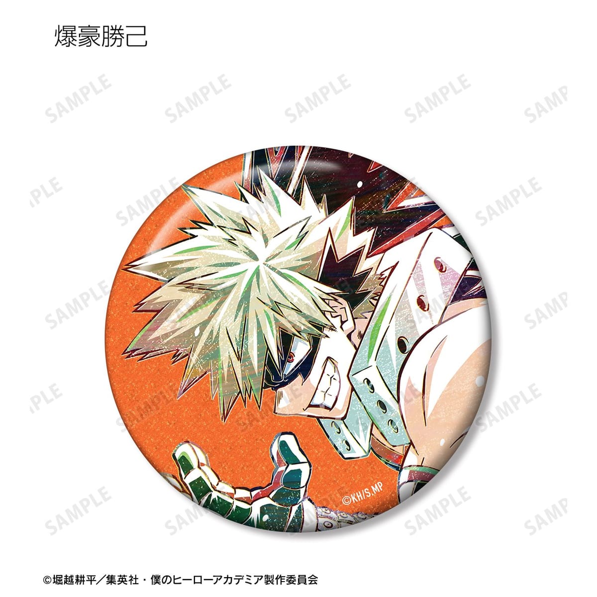 爆豪勝己、飯田天哉、塩崎茨、角取ポニー、天喰環、イレイザーヘッド、ベストジーニスト、ファットガム、トゥワイス、Mr.コンプレス、トランペット、キュリオスのビジュアルを新たなタッチで魅力的に表現し、グリッター加工を施した缶バッジに仕上げました。