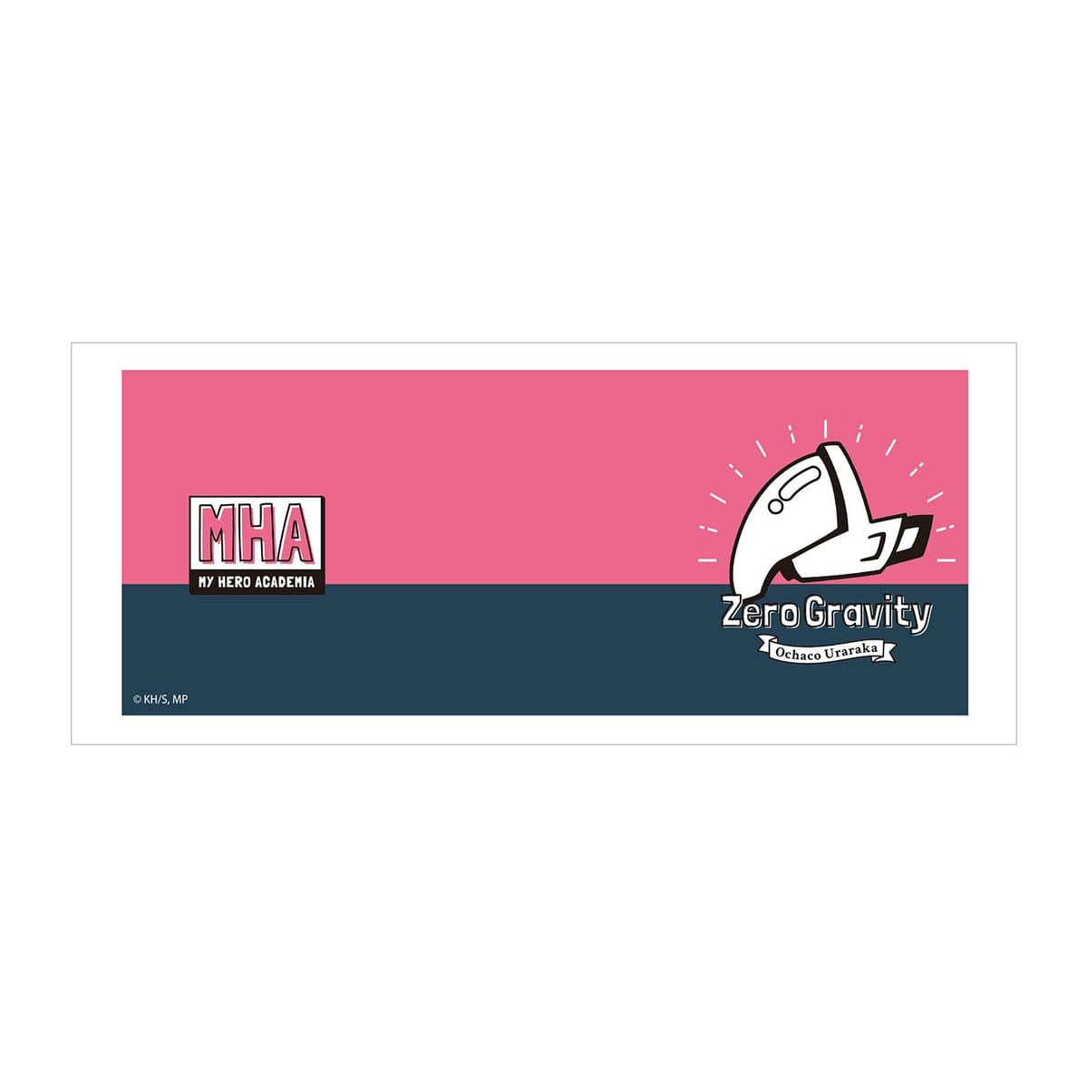 麗日お茶子をイメージしたモチーフ、”個性”名、名前を組み合わせ、キャラクターからイメージしたカラーリングのバイカラーで仕上げました。