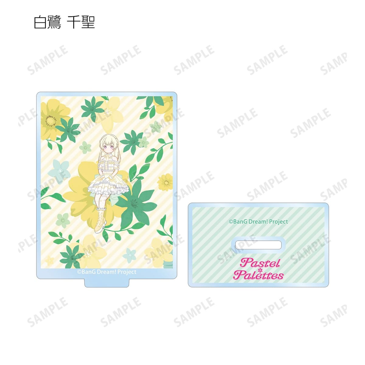 丸山 彩、氷川 日菜、白鷺 千聖、大和 麻弥、若宮 イヴ、高松 燈、千早 愛音、要 楽奈、長崎 そよ、椎名 立希のイラストをボタニカルデザインに落とし込んで繊細なタッチで新たに描き起こし、アクリルスタンドに仕上げました。