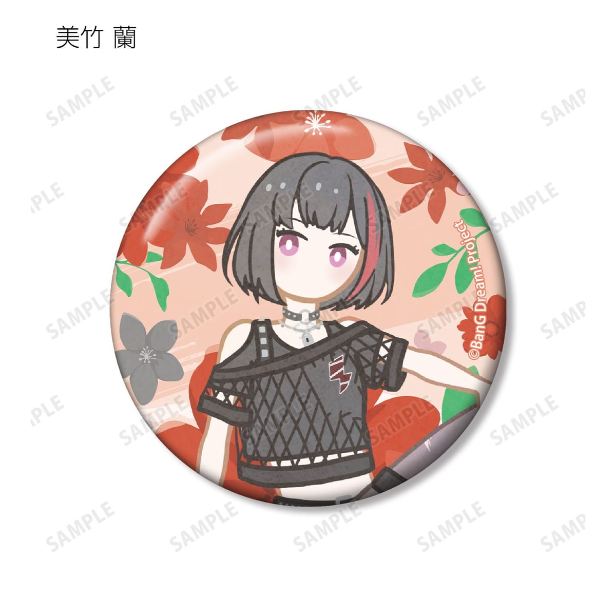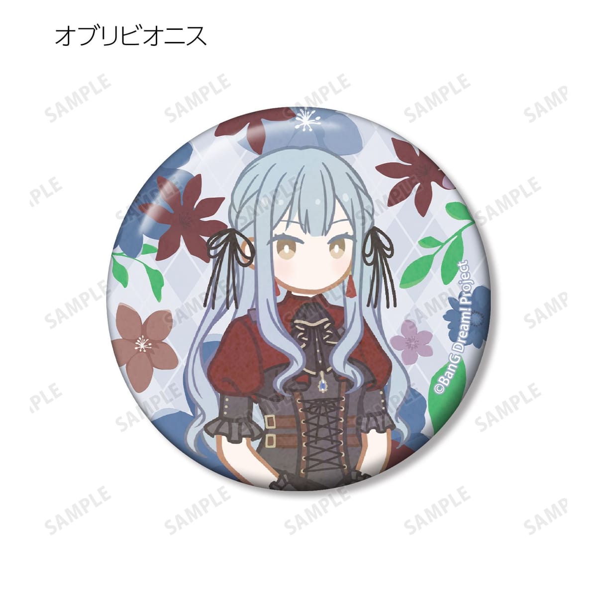 美竹 蘭、青葉 モカ、上原 ひまり、宇田川 巴、羽沢 つぐみ、ドロリス、モーティス、ティモリス、アモーリス、オブリビオニスのイラストをボタニカルデザインに落とし込んで繊細なタッチで新たに描き起こし、缶バッジに仕上げました。