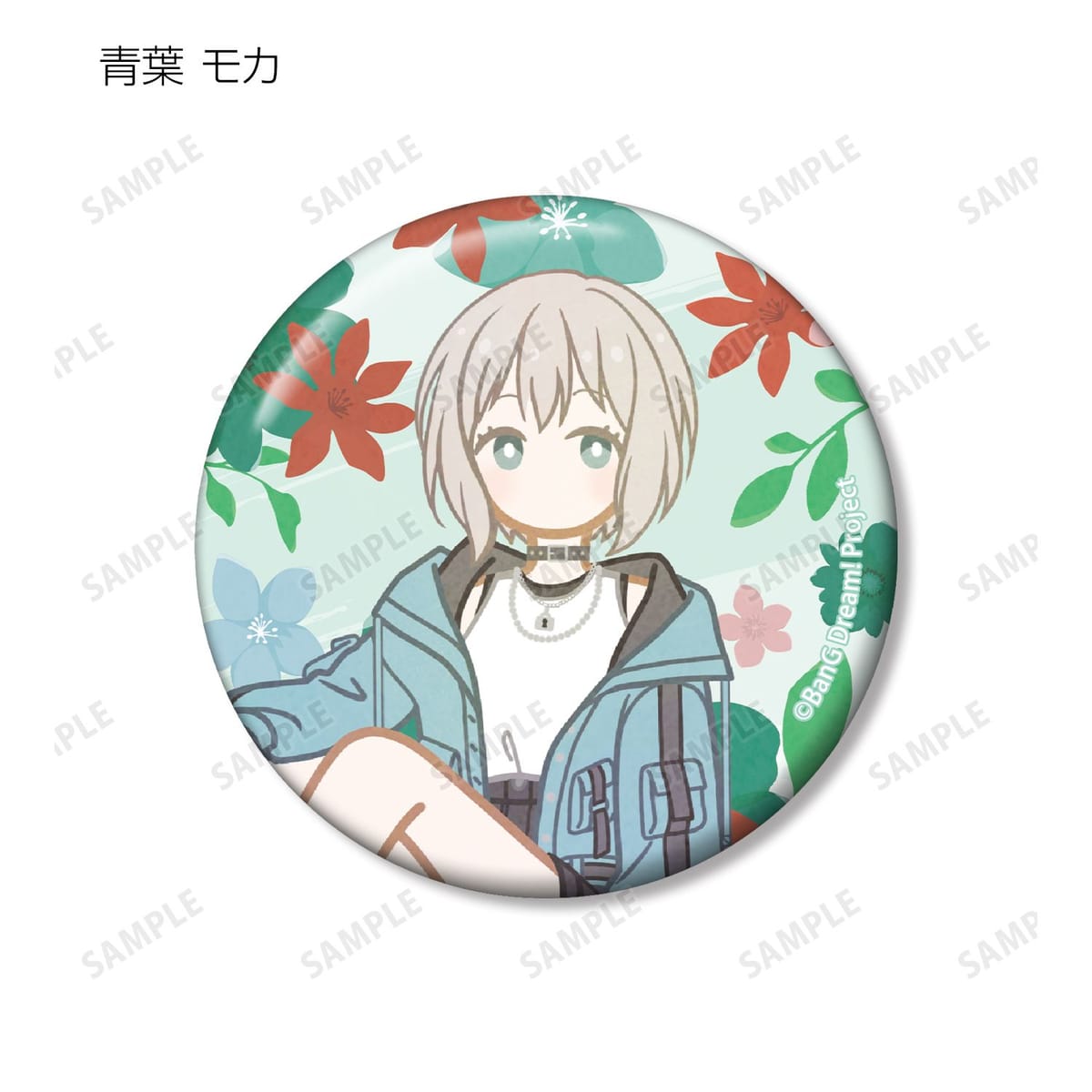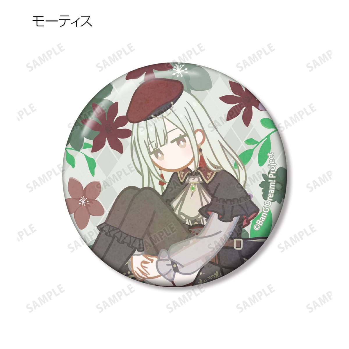 美竹 蘭、青葉 モカ、上原 ひまり、宇田川 巴、羽沢 つぐみ、ドロリス、モーティス、ティモリス、アモーリス、オブリビオニスのイラストをボタニカルデザインに落とし込んで繊細なタッチで新たに描き起こし、缶バッジに仕上げました。