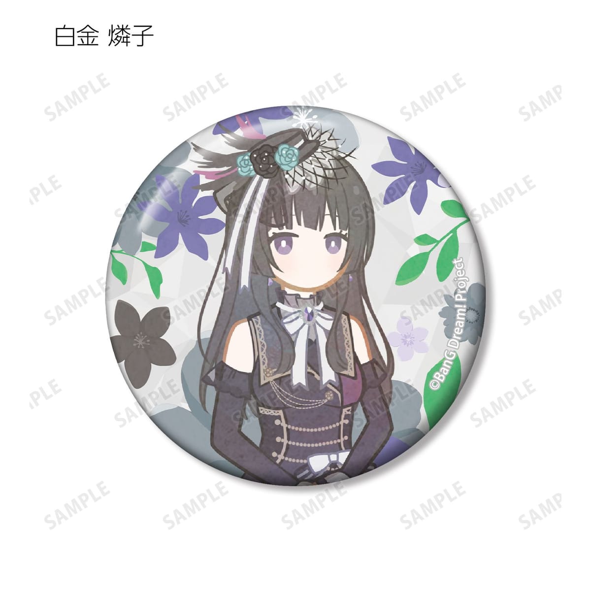 湊 友希那、氷川 紗夜、今井 リサ、宇田川 あこ、白金 燐子、レイヤ、ロック、マスキング、パレオ、チュチュのイラストをボタニカルデザインに落とし込んで繊細なタッチで新たに描き起こし、缶バッジに仕上げました。