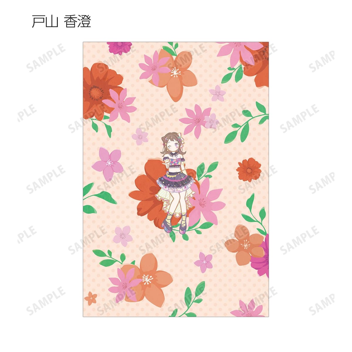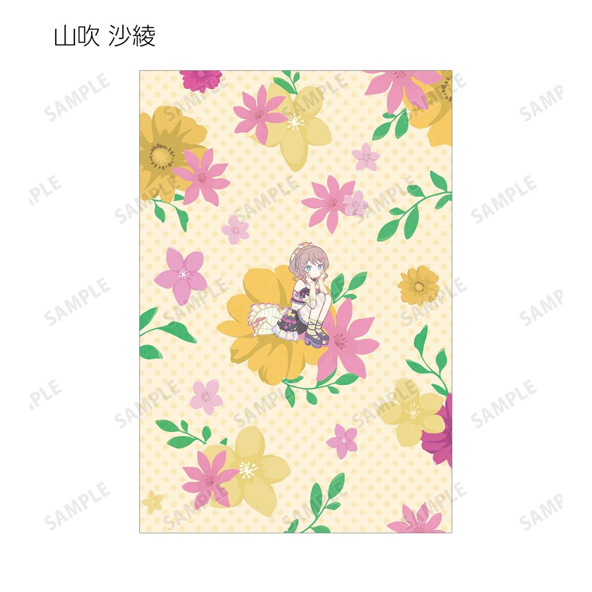戸山 香澄、花園 たえ、牛込 りみ、山吹 沙綾、市ヶ谷 有咲、仲町 あられ、宮永 ののか、峰月 律、藤 都子、千石 ユノのイラストをボタニカルデザインに落とし込んで繊細なタッチで新たに描き起こし、ポストカードに仕上げました。