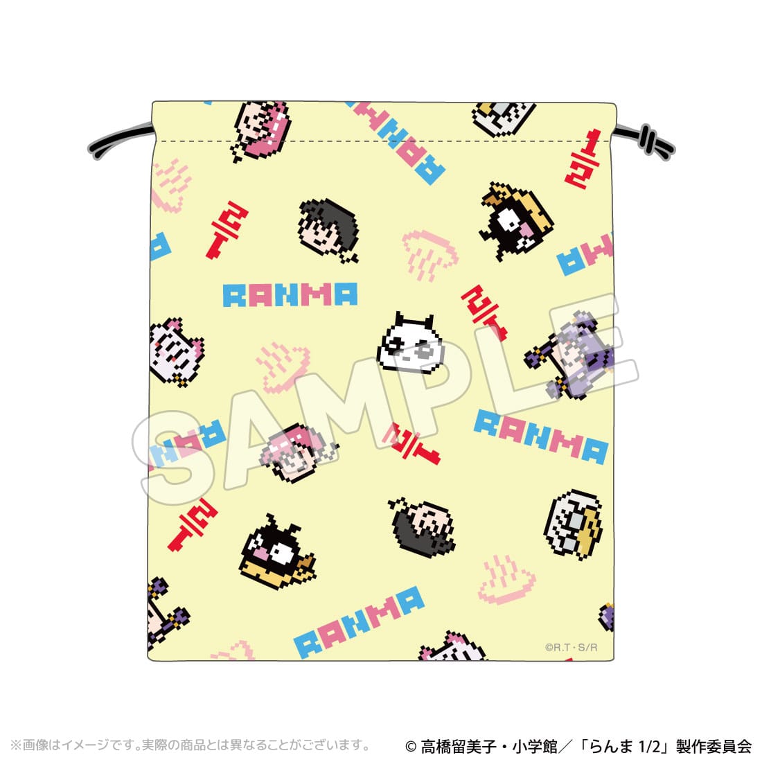 らんまやシャンプーたちの可愛いドットイラストが、マルチパターンでデザインされた巾着です。
