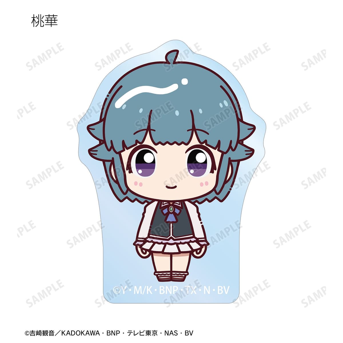 ケロロ、タママ、ギロロ、クルル、ドロロ、ガルル、タルル、トロロ、ゾルル、プルル、冬樹、夏美、桃華、サブロー、小雪がちょこんと立っているちびキャラを新たに描き起こし、アクリルステッカーに仕上げました。