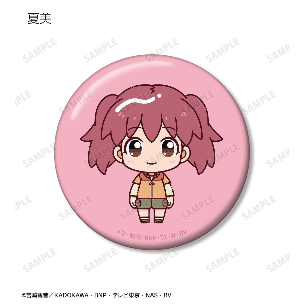 ケロロ、タママ、ギロロ、クルル、ドロロ、ガルル、タルル、トロロ、ゾルル、プルル、冬樹、夏美、桃華、サブロー、小雪がちょこんと立っているちびキャラを新たに描き起こし、缶バッジに仕上げました。