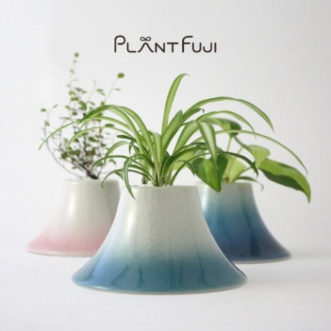過酷な環境を生き抜く植物の姿を描いたコンセプトワーク『涙のカズだけ』を 基にした富士山型ポットです。優美な富士の内に秘めたエネルギーを吸い上げ咲き乱れる植物の姿を、手のひら大で再現することができます。