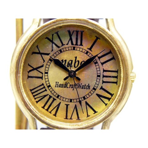 JUMBOサイズBrass(真鍮)モデル。クラシックなローマ数字をプリントした文字盤。ケース・文字盤共にアンティーク感ある古美仕上げです。ケース直径約36mmの大き目サイズで、インパクト大です。リューズをケースに埋め込む様にし、手首への当りを軽減しています。 ご注文から制作しますので、お届けまでに約3週間から1か月程お時間を頂きます。