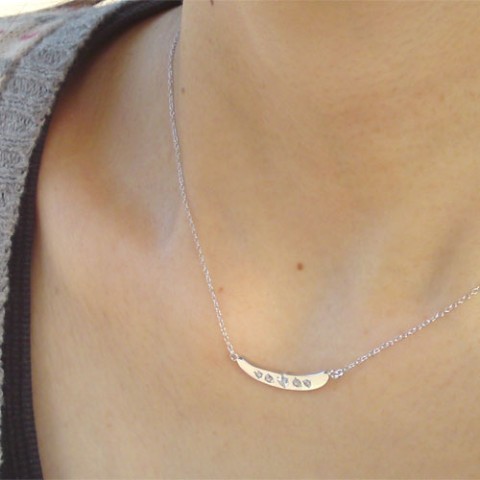 ミカヅキモは三日月に似た形をした藻の一種です。首のラインを美しく見せるデザインです。キュービックジルコニアで細胞やその中に光る粒子の様子を表現しました。