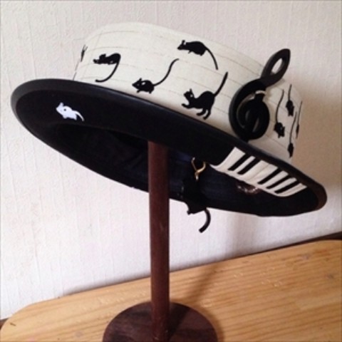 サイドの猫ちゃんはとり外せてピアスにもなる何ともお得なお帽子♪