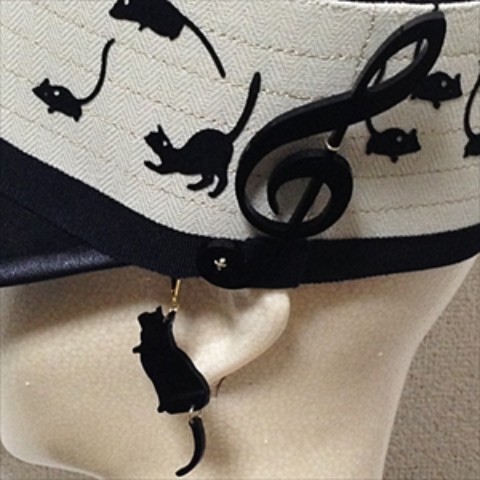 サイドの猫ちゃんはとり外せてピアスにもなる何ともお得なお帽子♪