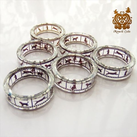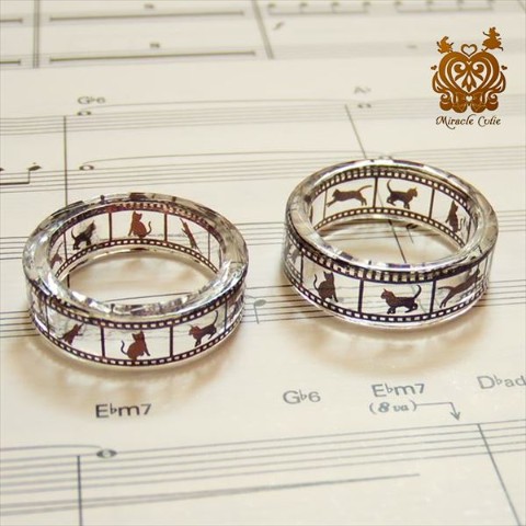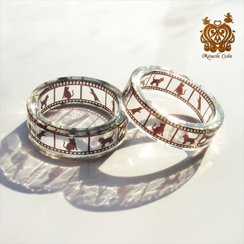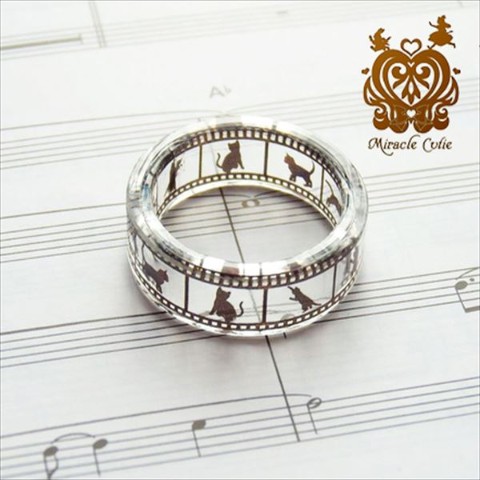 カメラのフィルムをイメージした、こねこの指輪です。※写真1枚目は、電球色LED照明の下で撮影したものです。