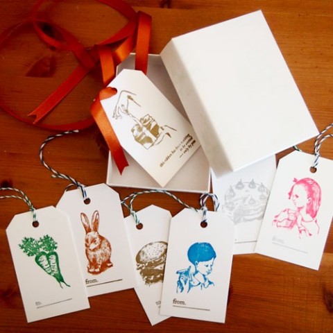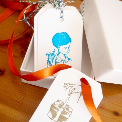 レタープレスで刷られたメッセージタグが6枚入ったboxです。