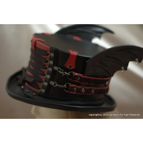 【candynoir 】KURENAI-BAT赤黒コウモリ翼・ダブルベルト・コルセットハット(ミドル)58cm