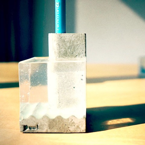 Poolは水をコンセプトに製作しました。Poolは机の上にプールを置く。まさに卓上プールです。そこにペン立ての機能性を取り入れた作品です。