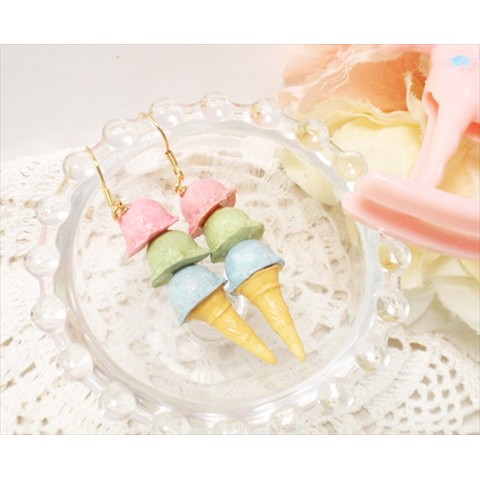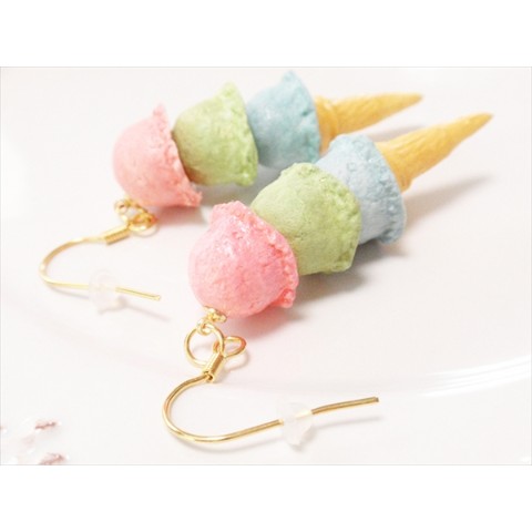 【SNOW BABY LOVE】カラフル3段アイスクリームピアス