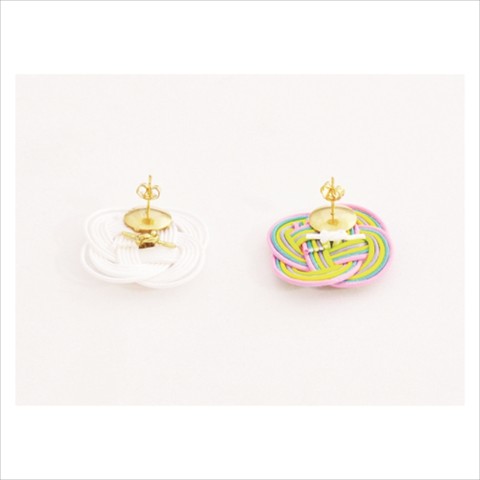 表情の違う水引きを使用して"菜の花結び"で結んだピアスです。