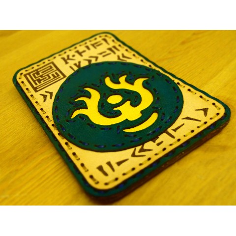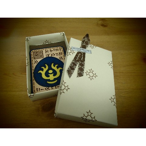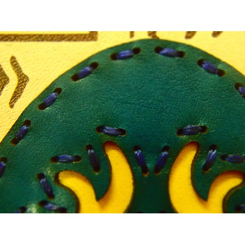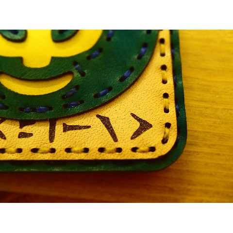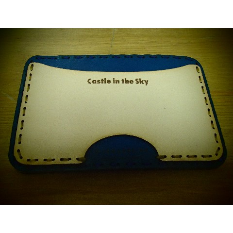 青く輝く飛行石をモチーフにした鮮やかなパスケースはレザーブランドOJAGA DESIGNとのコラボレーション商品。