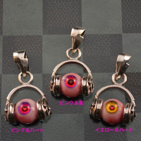 目玉にヘッドホンのペンダントトップ