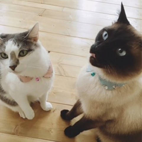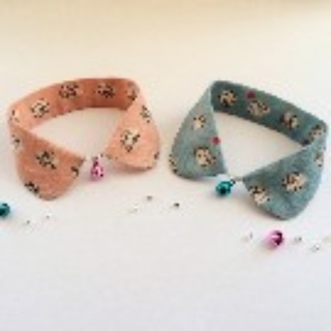 ねこちゃんのつけえりを作っています。時々、飼い主さん用にお揃いアクセ等も作ります。
