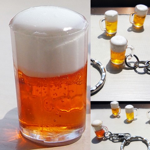 約15mmと大変小さなミニチュアのビールジョッキで手作りした生ビールのキーホルダー